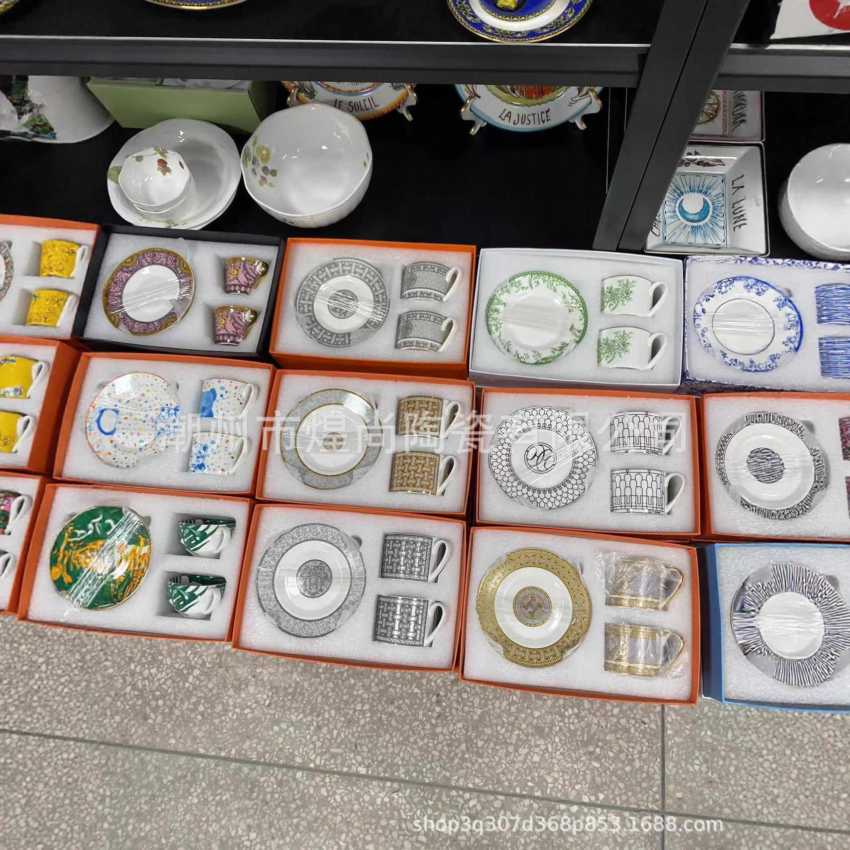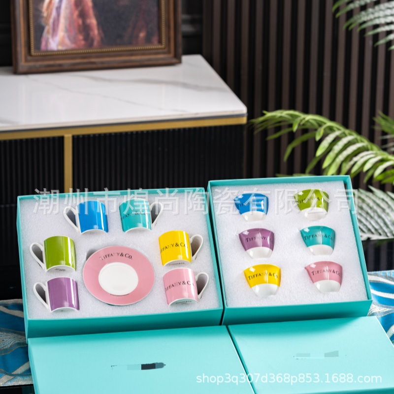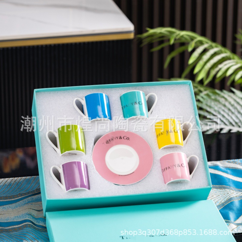 跨境咖啡杯套装6杯6碟家用陶瓷杯子下午茶咖啡杯礼盒装厂家批发