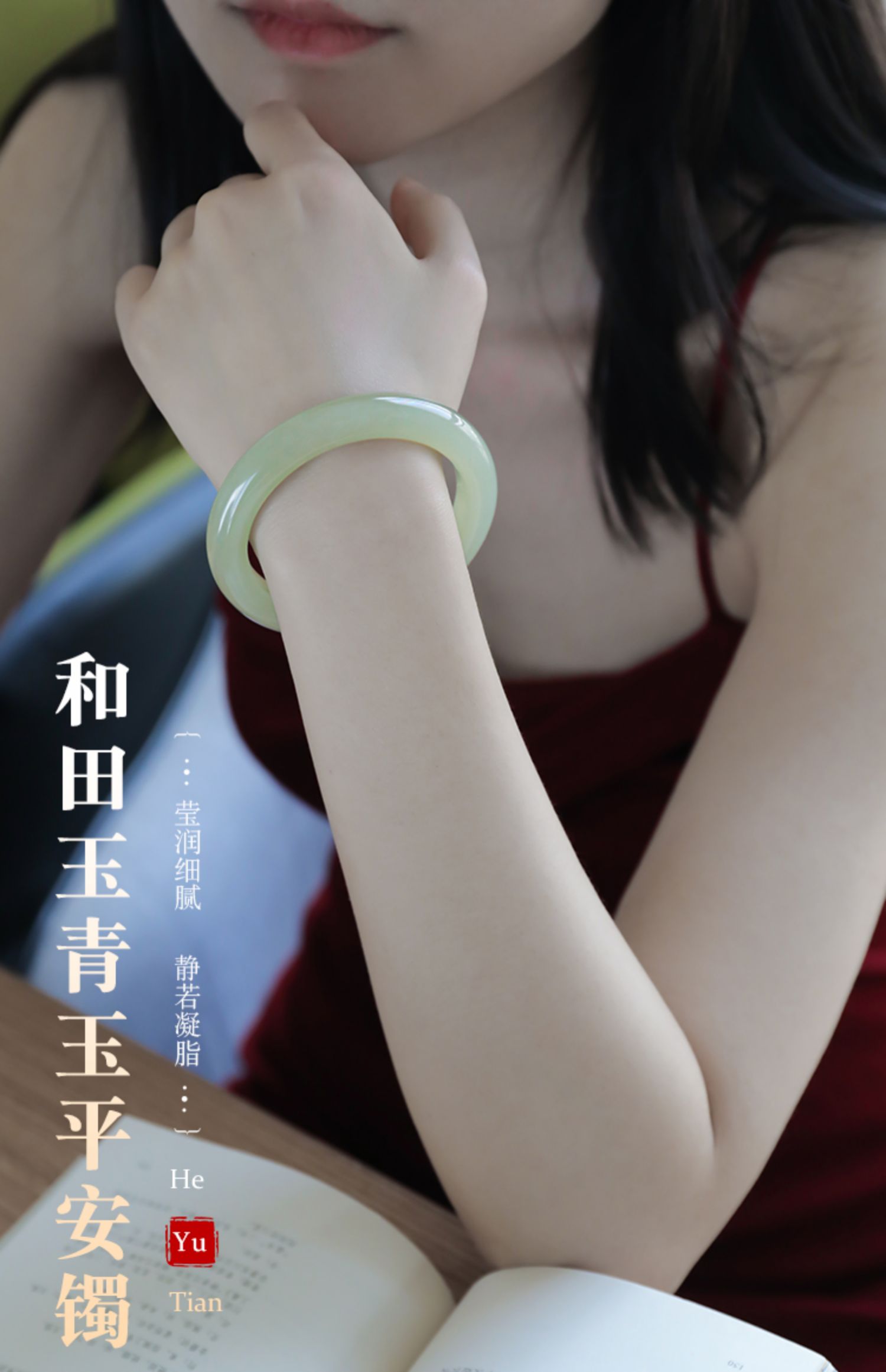 雲翠社本物の和田玉青白玉ブレスレット天然晴水ホウレンソウ緑玉ブレスレット女性の七夕プレゼント