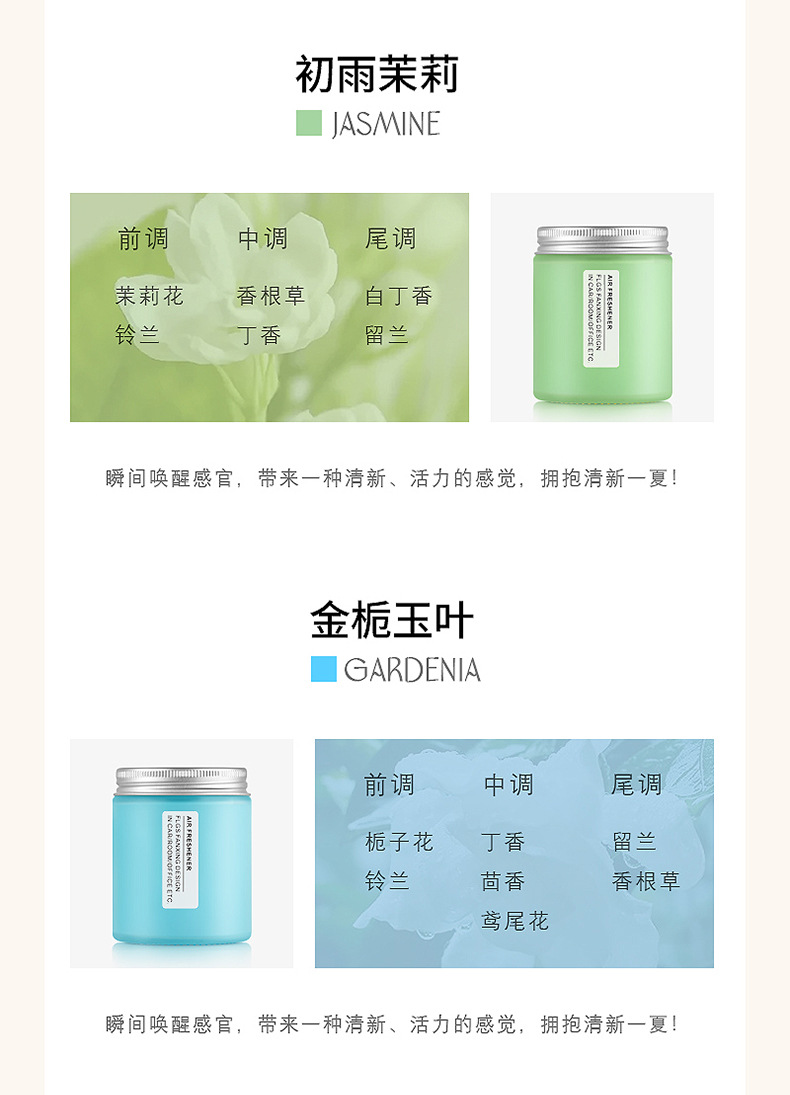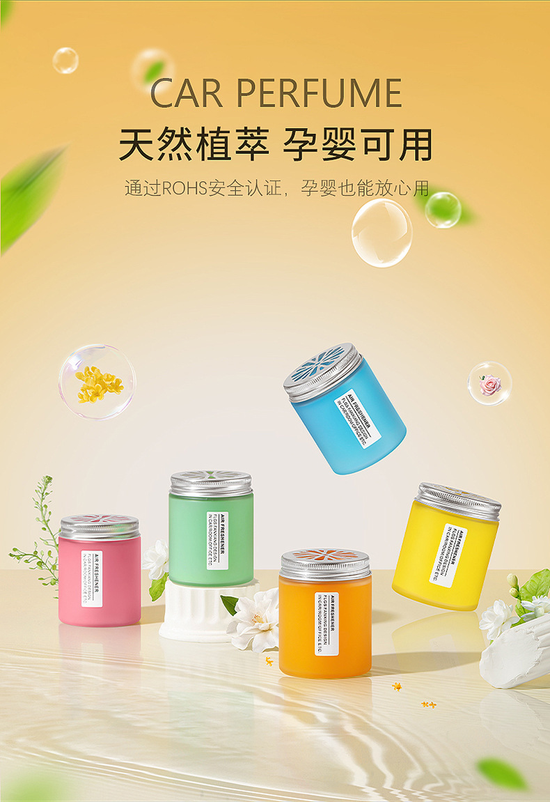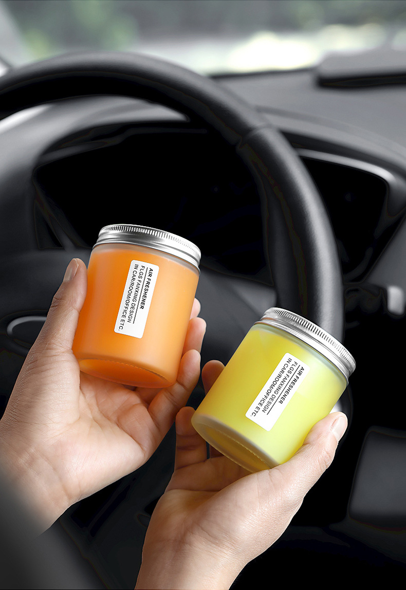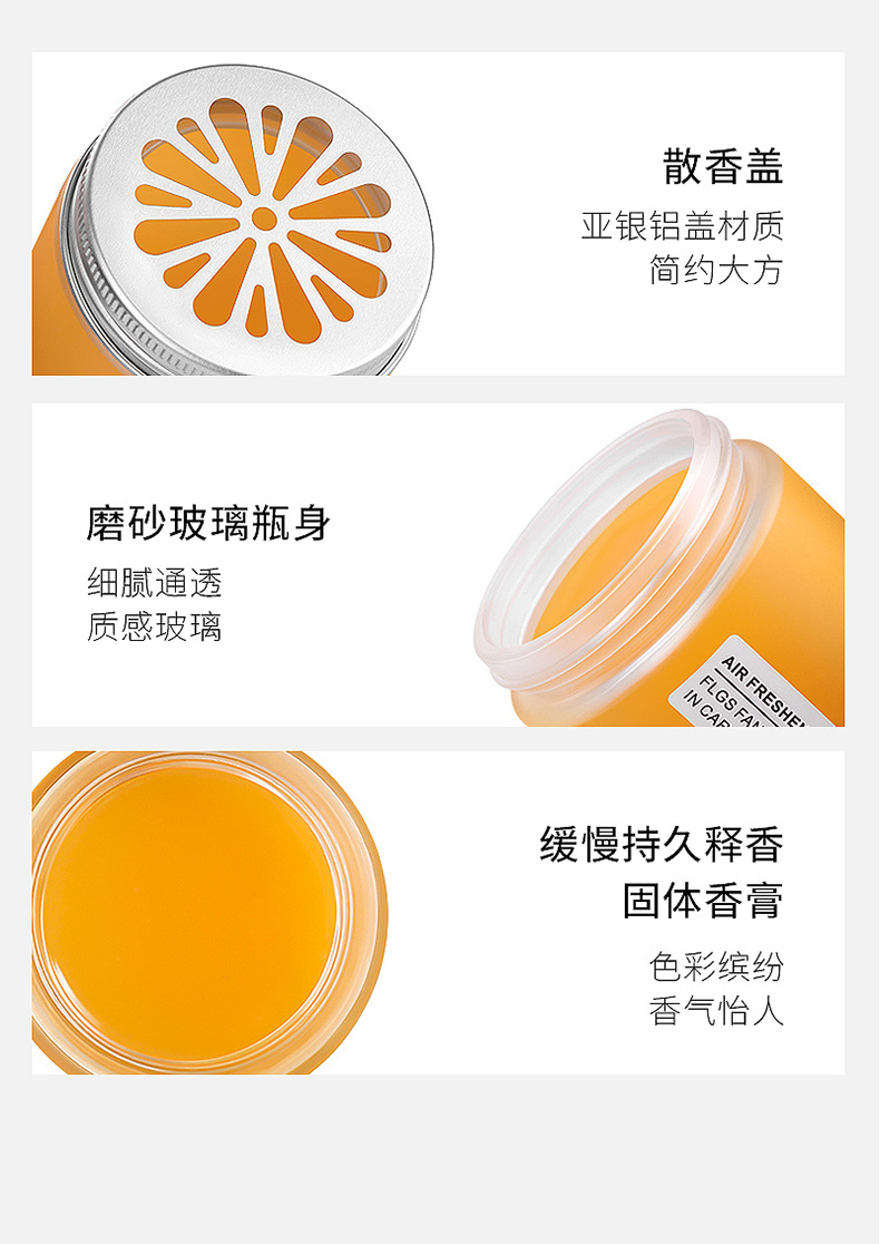 車載アロマ創意固体車載香膏置物固体車載香水アロマ高級感アルミ蓋ガラス瓶