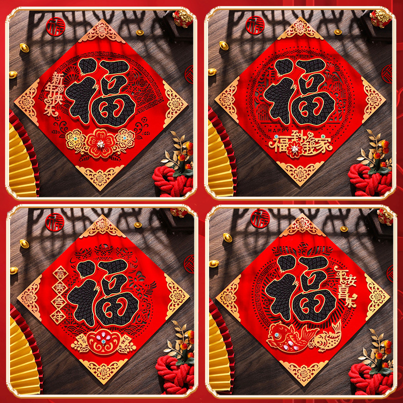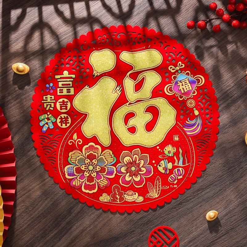 2026绒布福字镂空窗花自粘胶新年福字贴门贴春节年货年画批货烫金