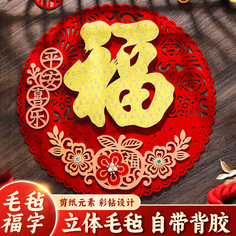 2026马年窗花镂空毛毡福字门贴新年福字贴立体背胶門貼批货中国风