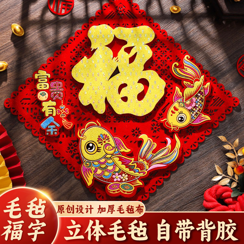 2026马年立体毛毡福字门贴背胶福字贴新年装饰春节年画批货窗花