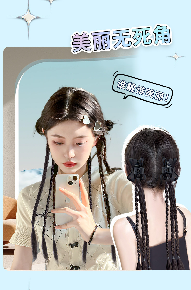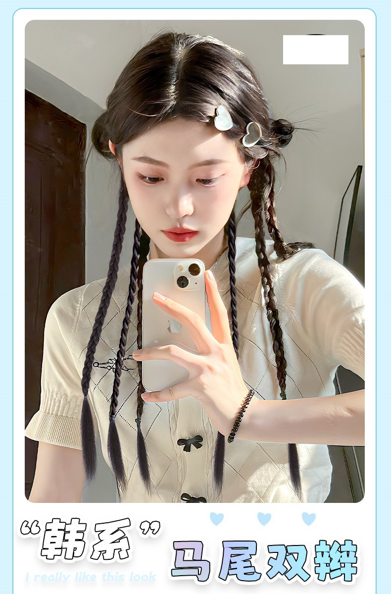かつら三つ編み甘いクールホットガールナチュラルボウツイスト三つ編みロング三つ編みインターネット有名人ガールグループボクシング三つ編みかつら女性ポニーテール
