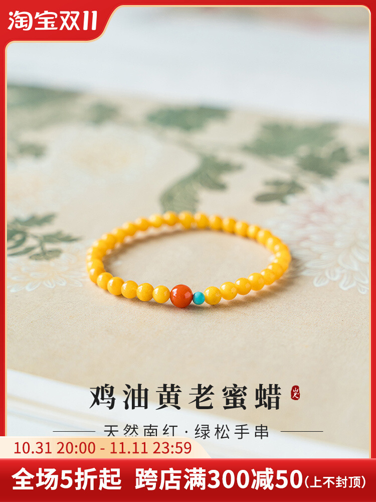 ミツロウの手串の女性の天然の鶏の油の黄色の琥珀の南の赤い緑の松石の多宝のブレスレットの双輪の3周の山悦