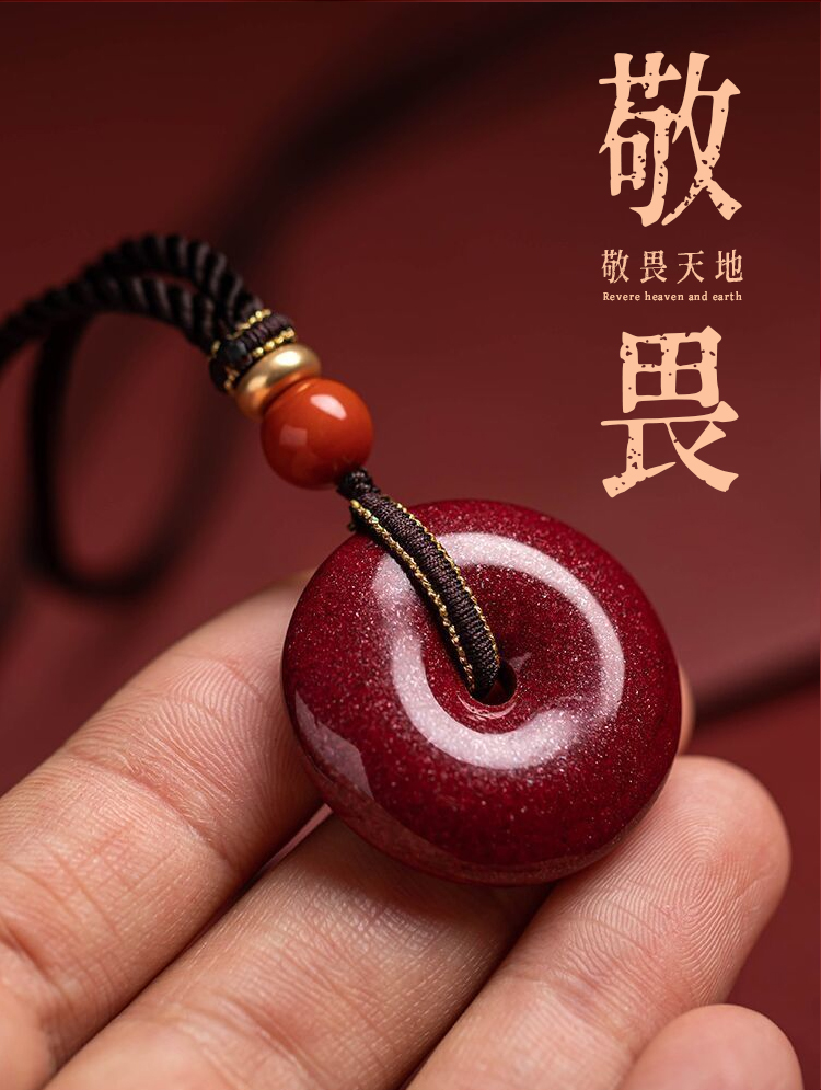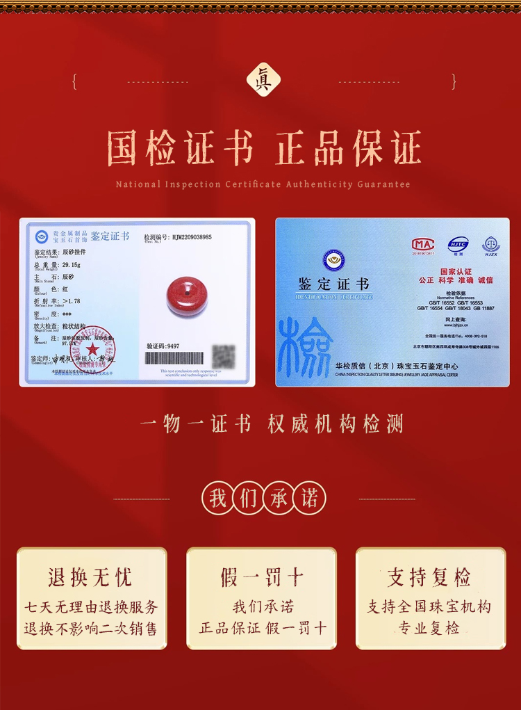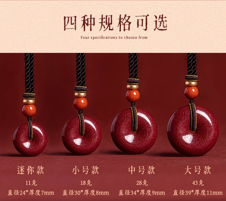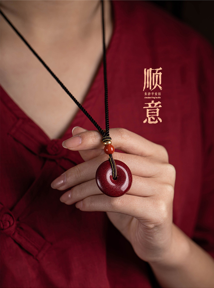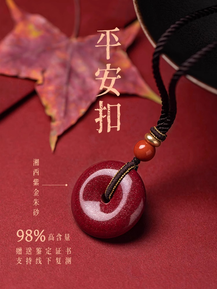 【保真】天然朱砂平安ボタンペンダントネックレス男性女性用平安ボタン