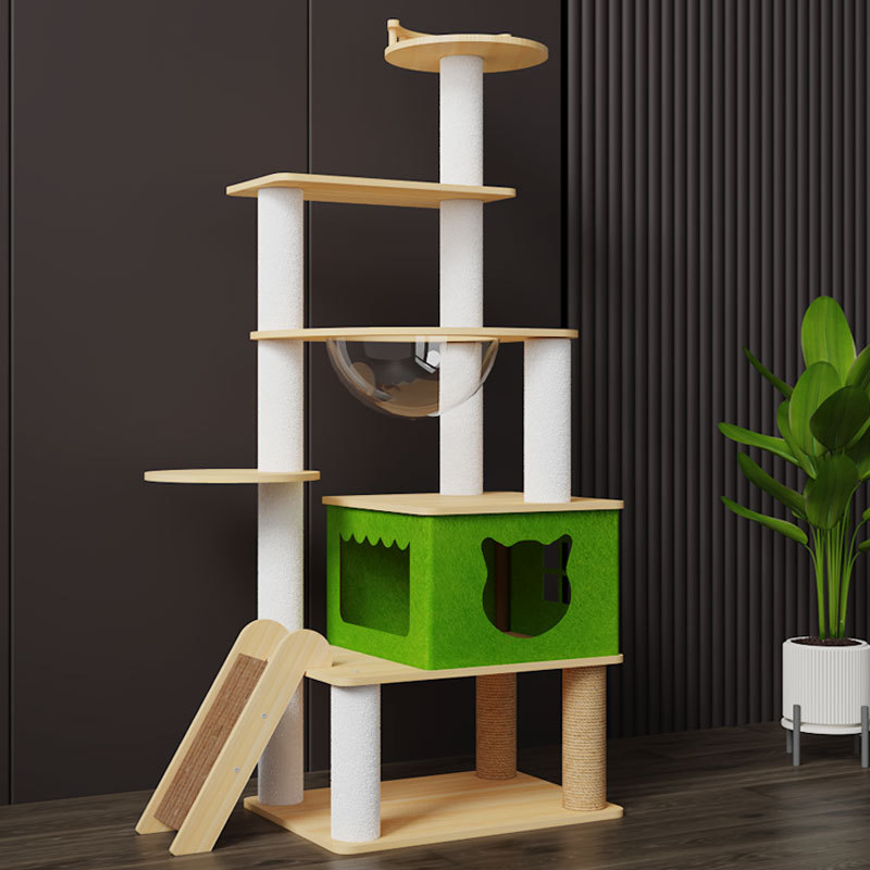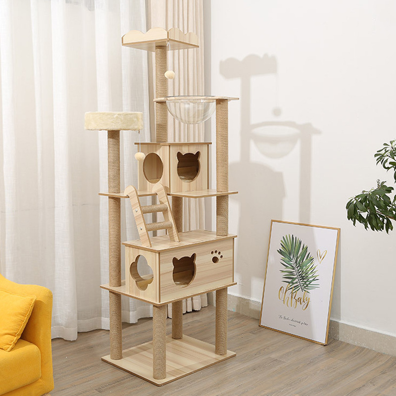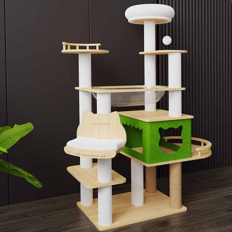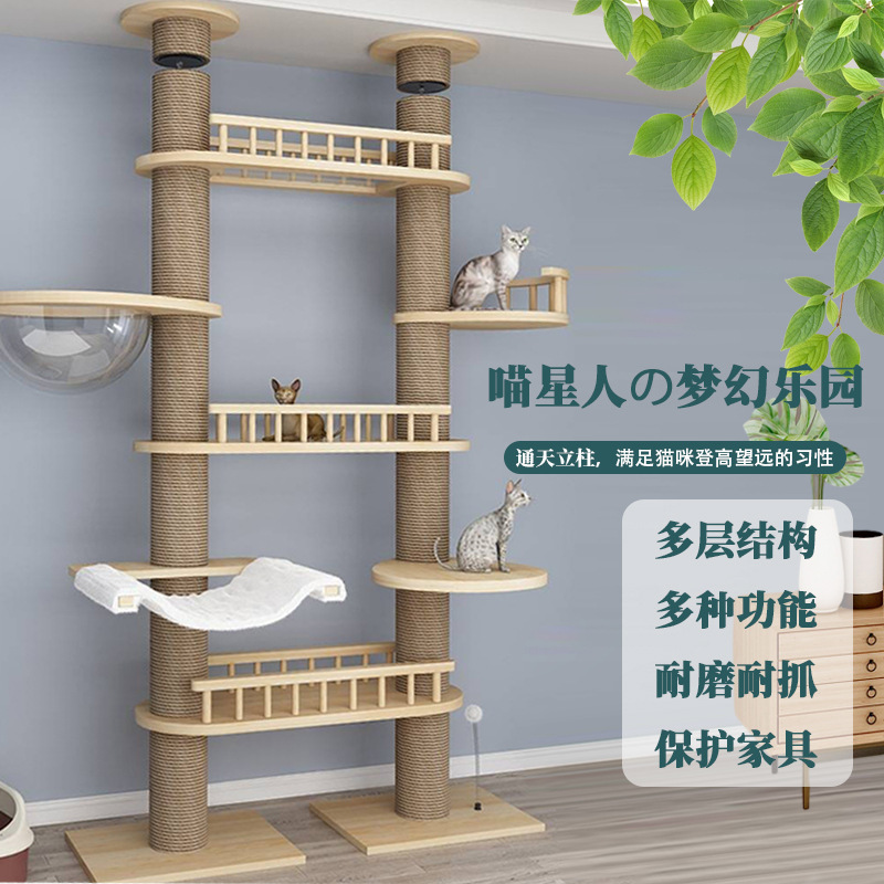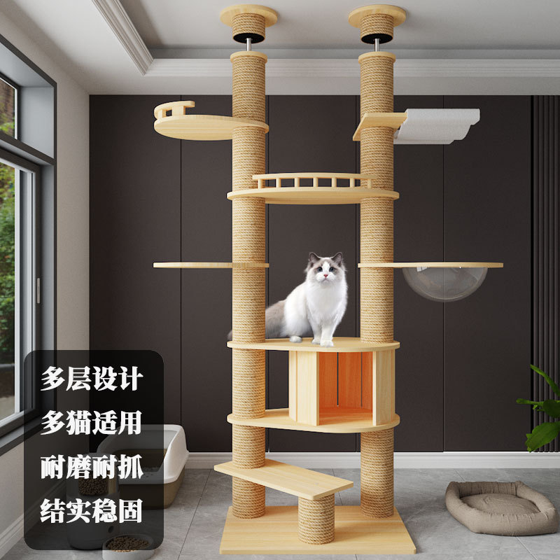 キャットクライミングフレーム、無垢材多層、スペースを占有しない、大型キャットクライミングフレーム、キャットネスト、キャットツリーが一体化