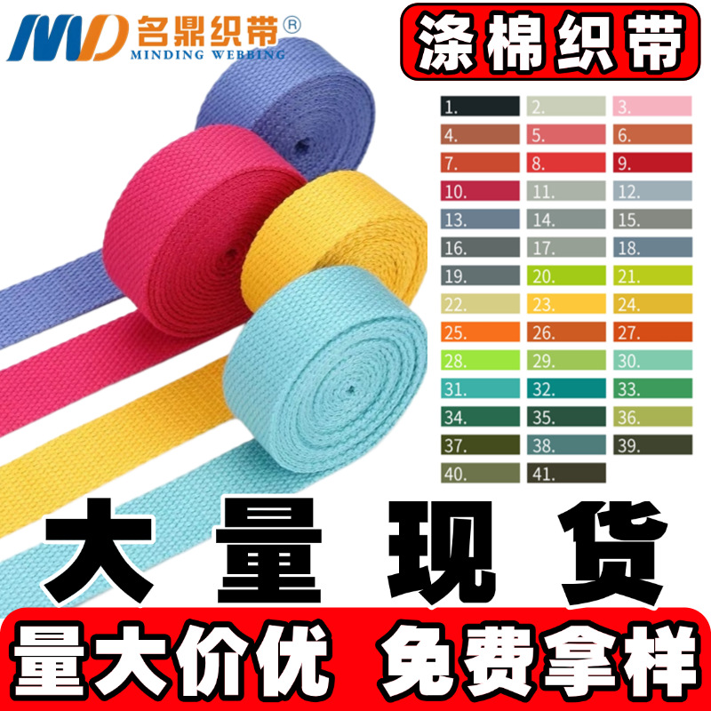 厚手のポリエステル綿織りベルト、160色以上、バックパックストラップ、キャンバスバッグストラップ、衣料品、箱、バッグ、ハンドバッグ用織りベルト、付属品卸売