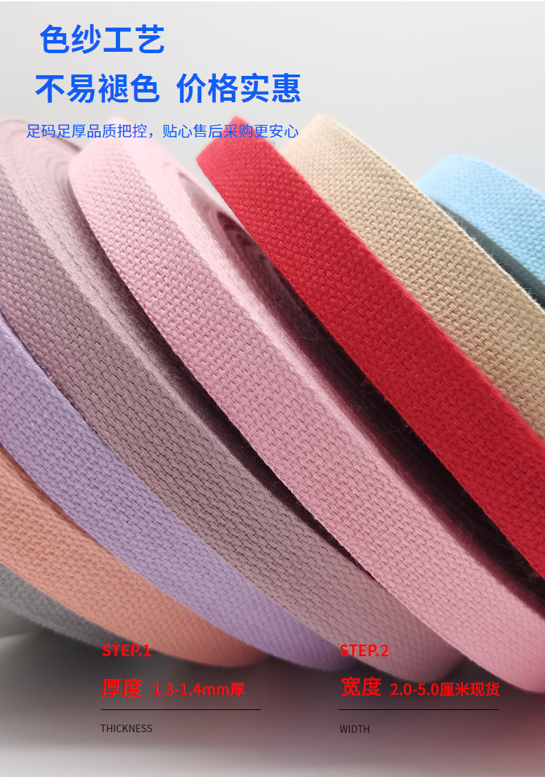 工厂直销彩色珠纹涤棉织带加厚加密帆布包箱包辅料批发织带