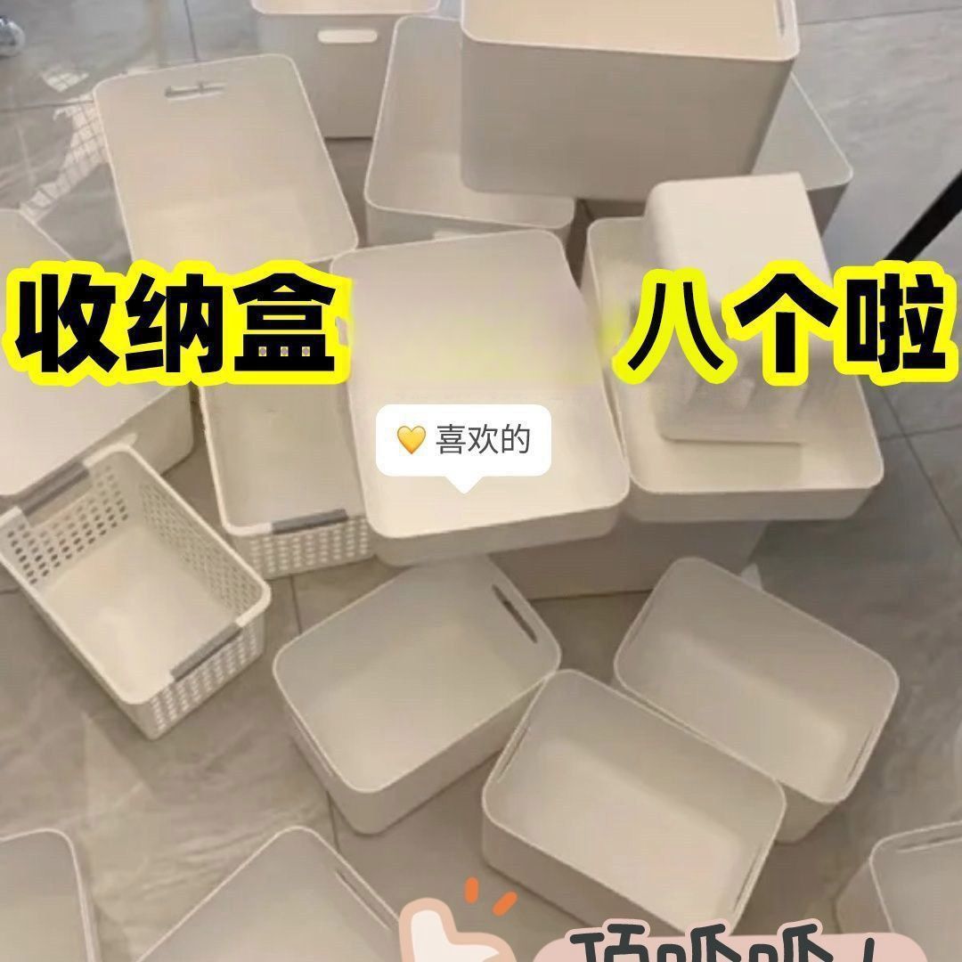 安い価格でシンプルな白い手提げ収納かご寮シール収納ケースins風プラスチック大容量雑物枠