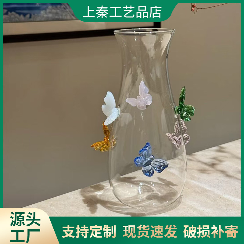 现货供应蝴蝶花瓶凉水壶高硼硅玻璃醒酒器小众设计原创设计手工造