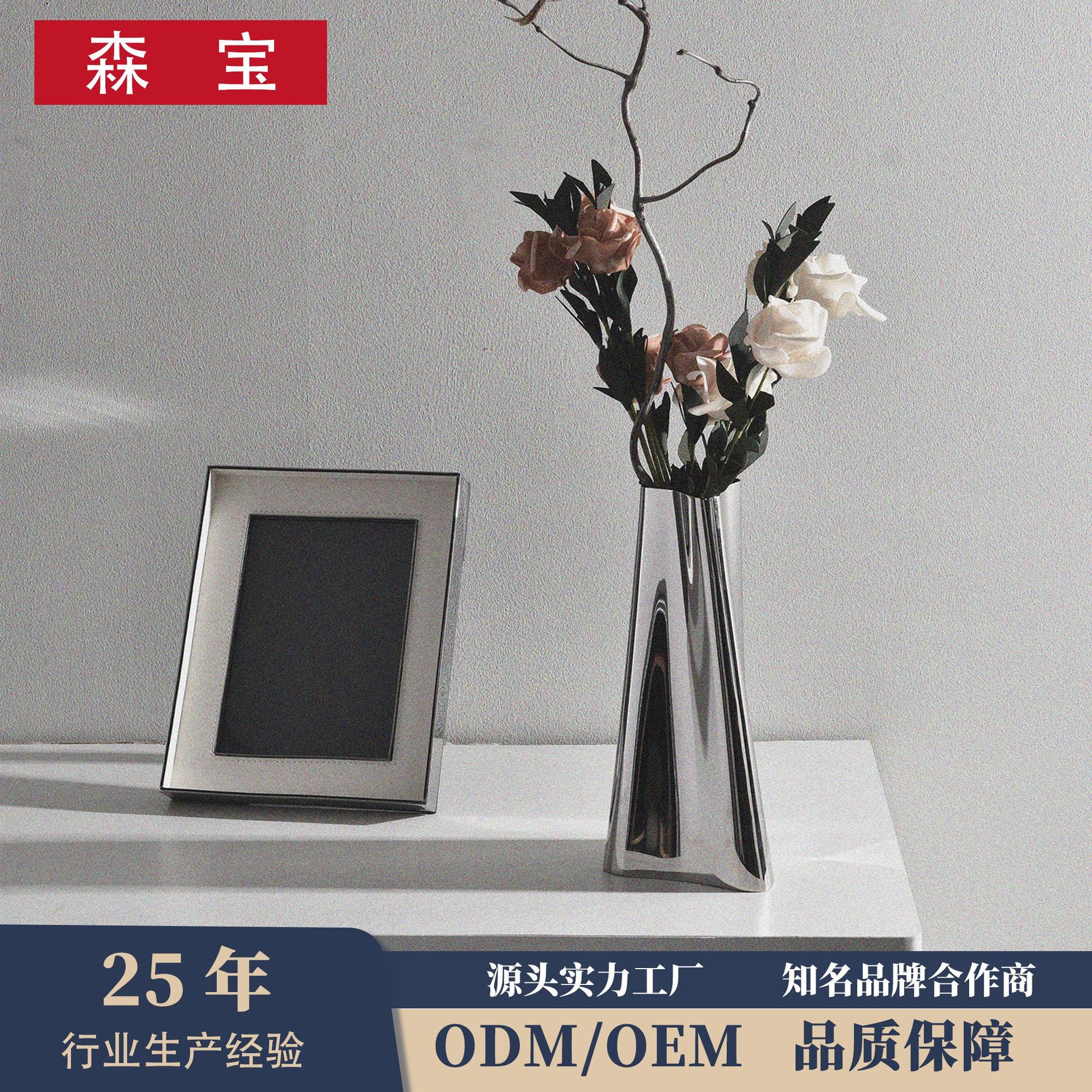 不锈钢镜面艺术花器 北欧现代简约花瓶 家用客厅装饰插花摆件