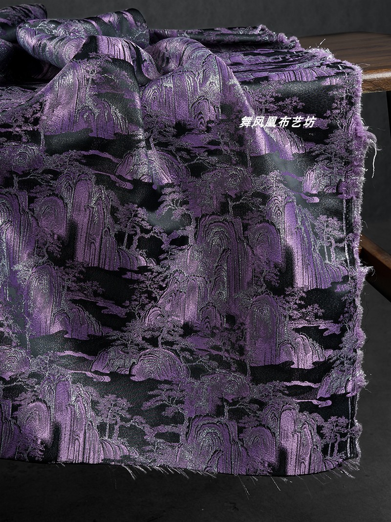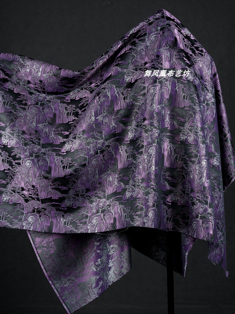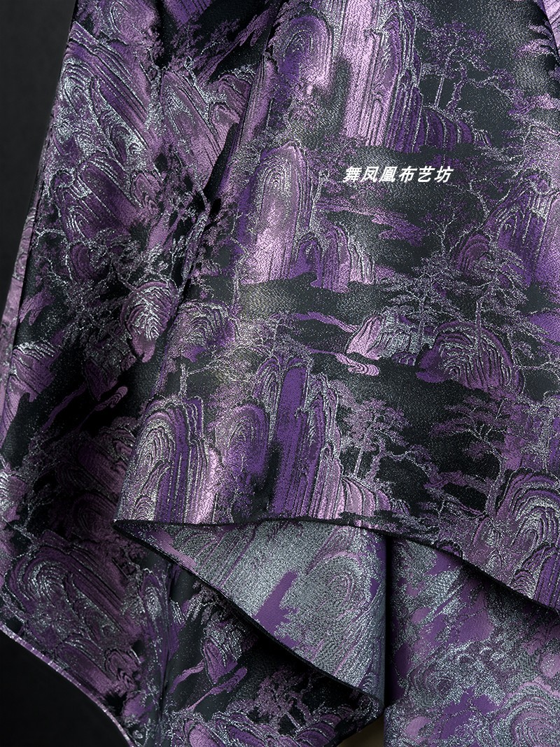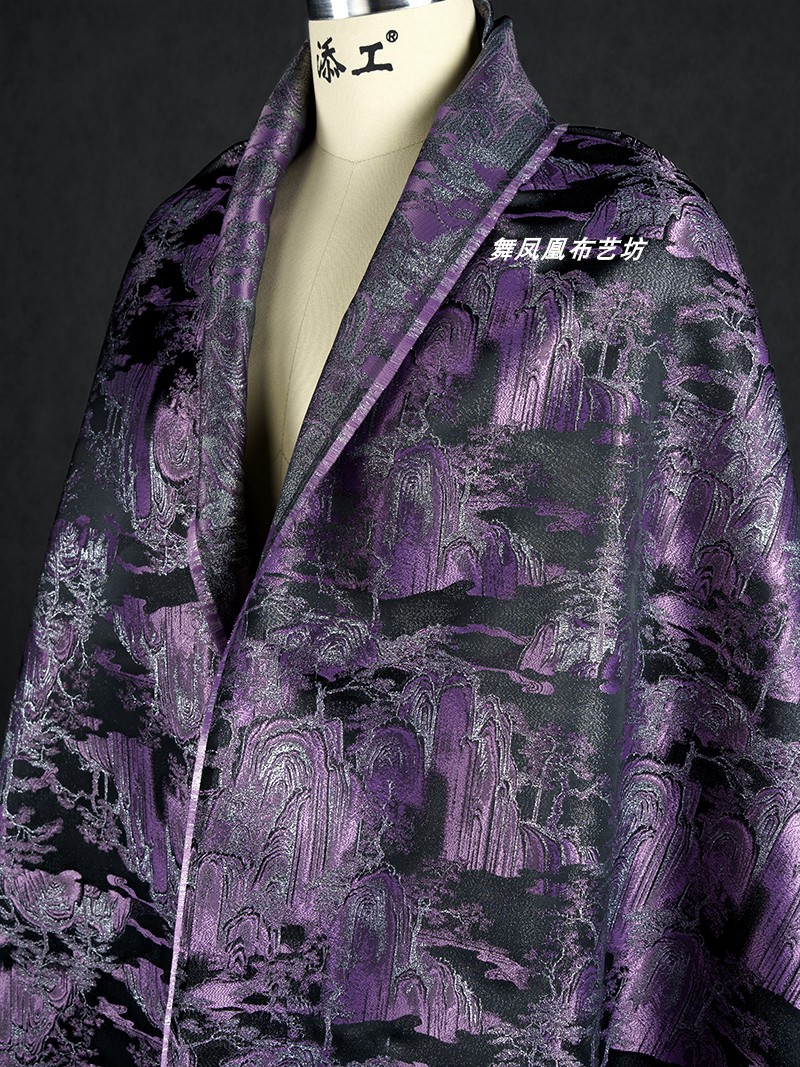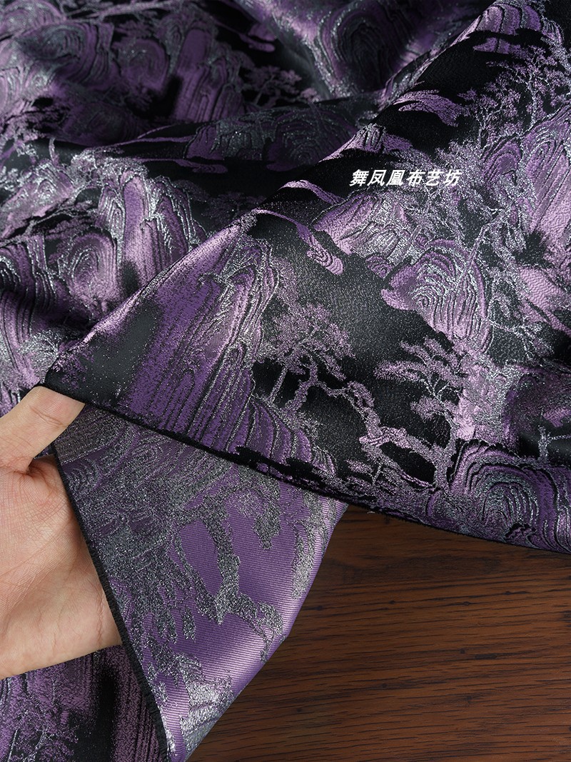 紫色の山水風景織錦織ジャカード生地新中国式コート馬甲復古の美しい服装生地