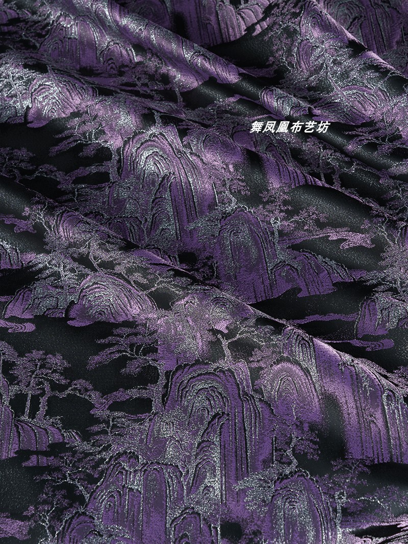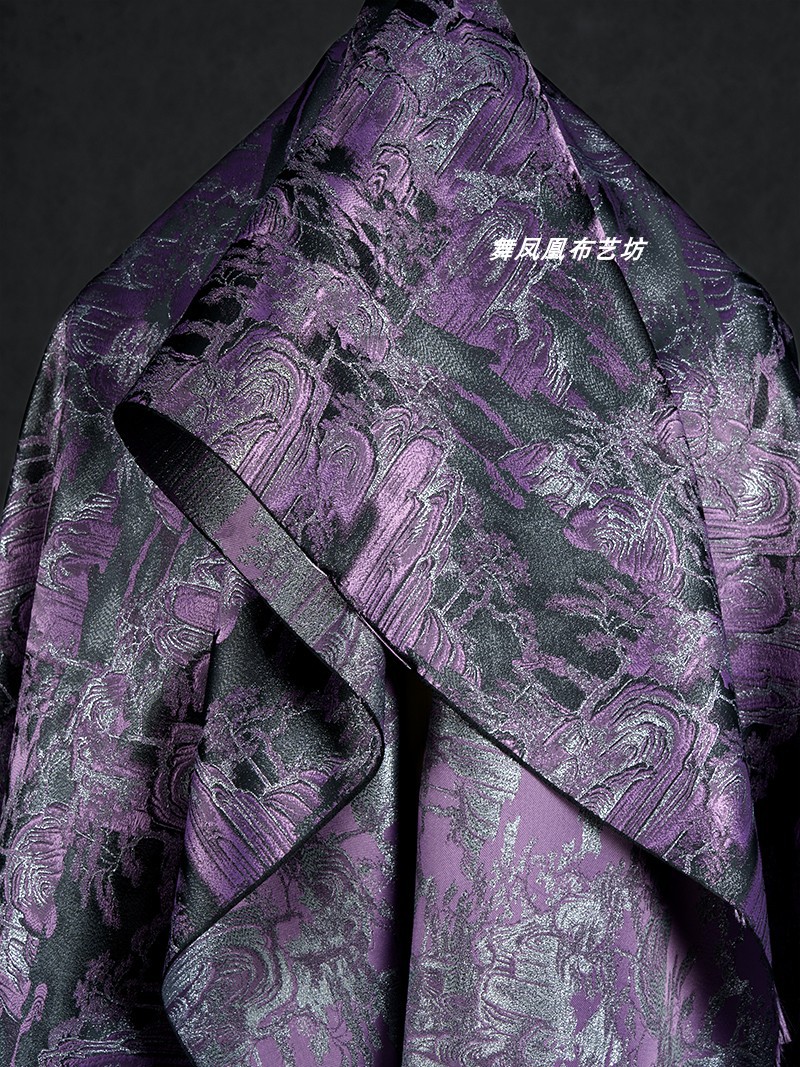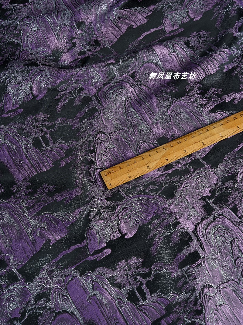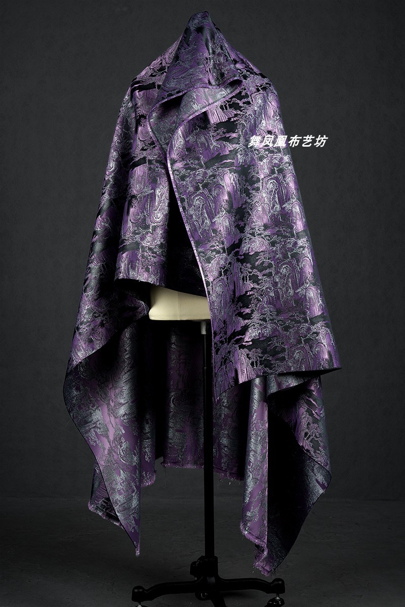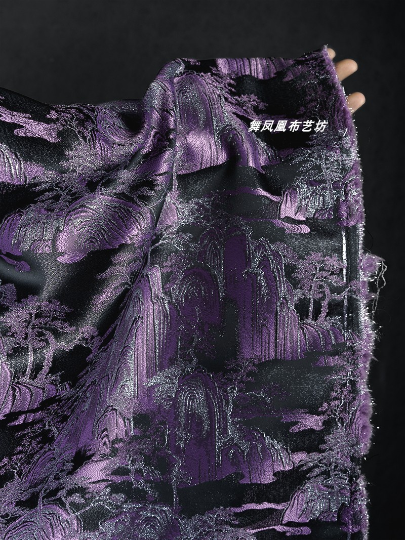 紫色の山水風景織錦織ジャカード生地新中国式コート馬甲復古の美しい服装生地