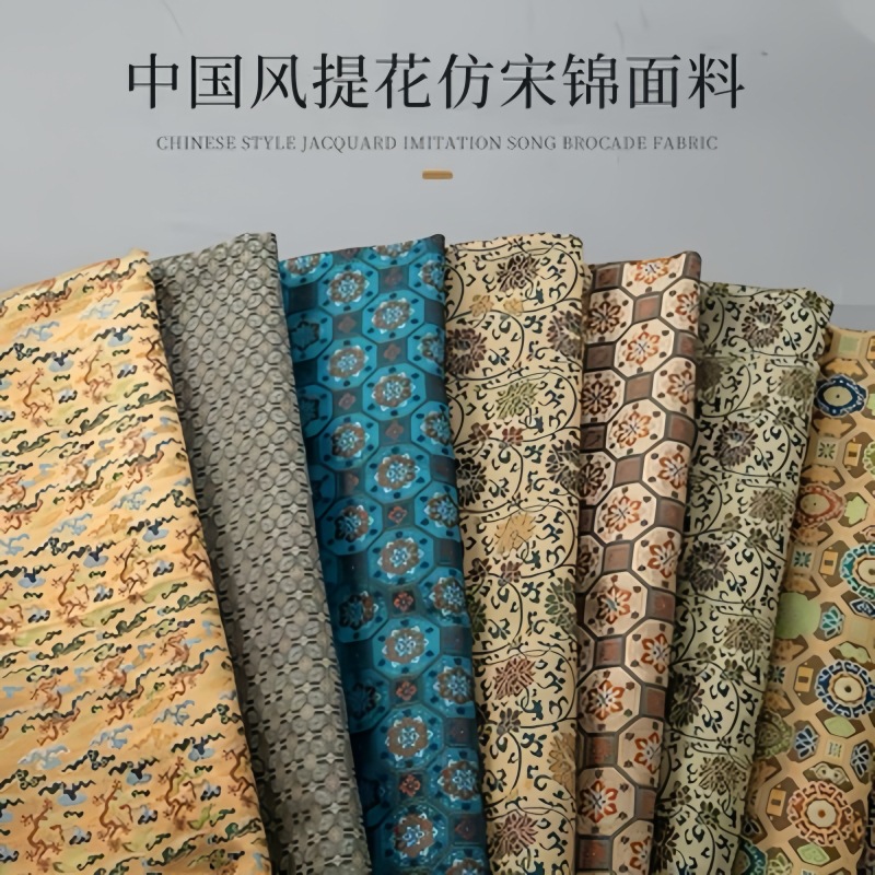清明上河図錦織ジャカード生地光沢宋錦シルク中国風漢服コート馬甲生地
