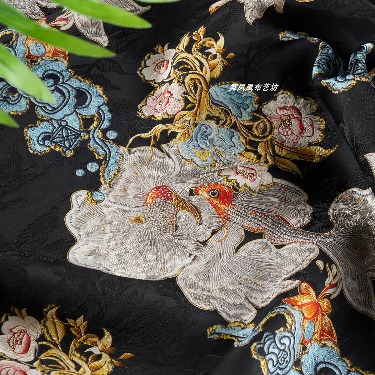 金魚花香る雲糸花生地黒新中国風のチャイナドレスシルキー通気性生地
