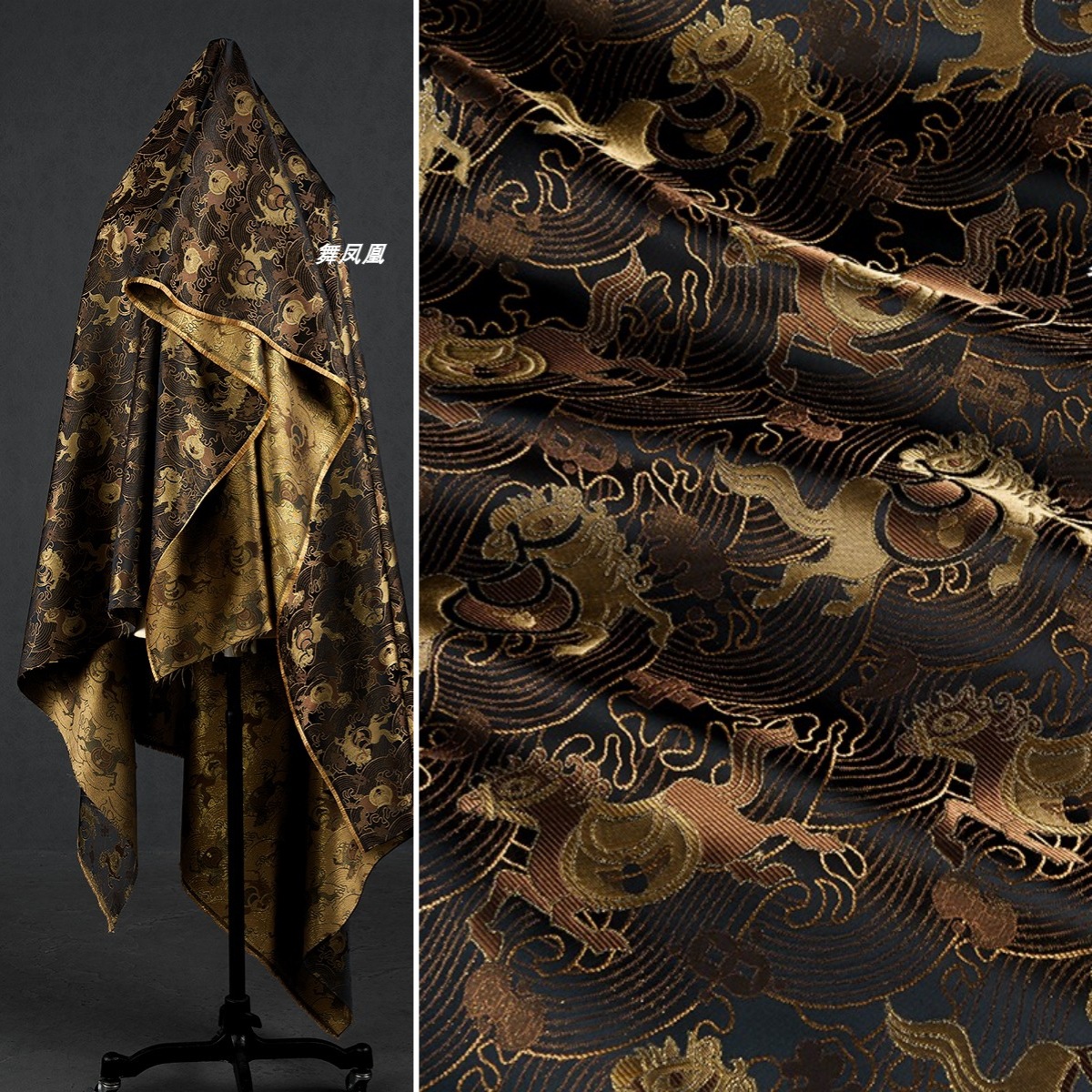 【すぐ金持ち】黒金色織錦織生地金老銭風織金糸新中国風生地