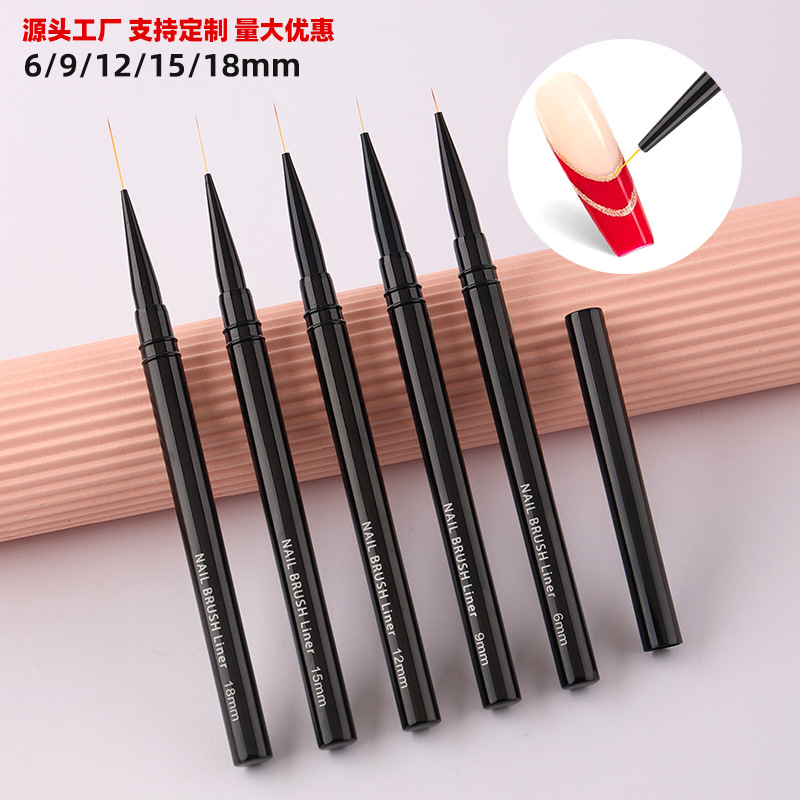 日本製黒アルミポールマニキュアペンセット、ラインペン、フックペン、カラー絵画フラワーペン、ネイルサロン専用ブラシ