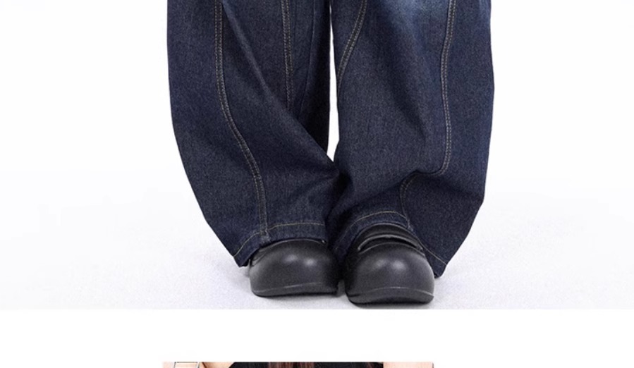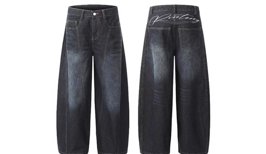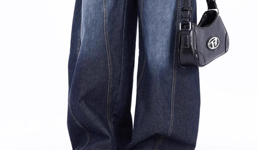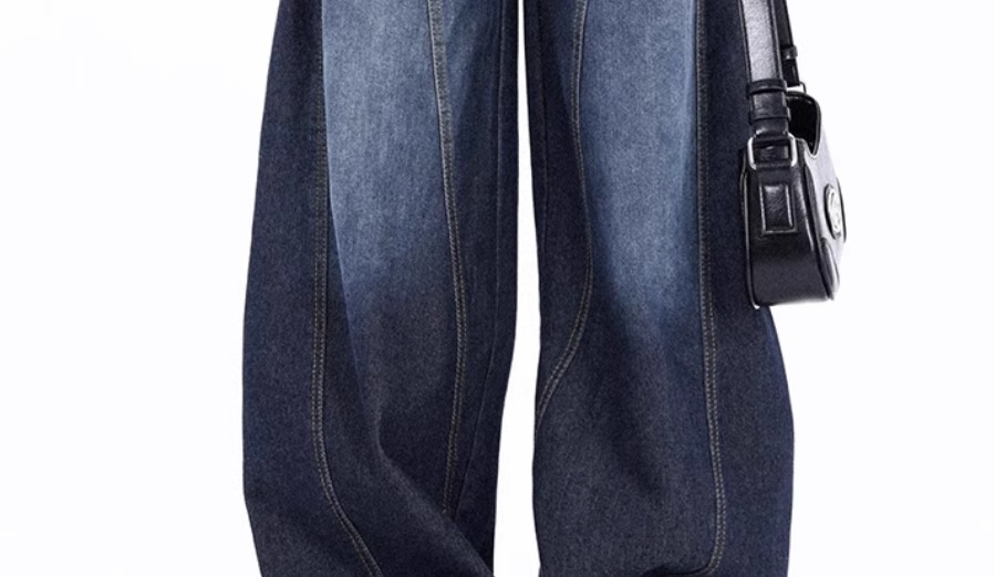 アメリカのbaggyの曲がり角の大きい足のジーパンの女性の2024秋冬の新型の水洗いの大きい足のバナナのズボン