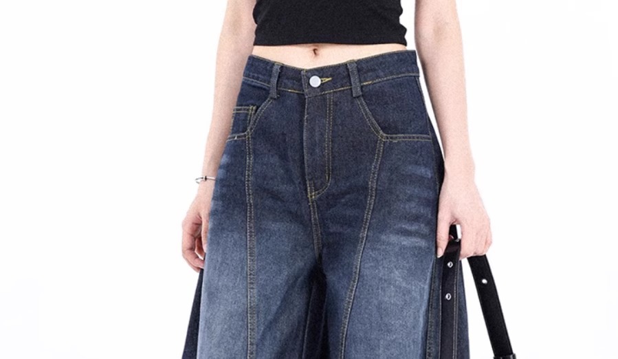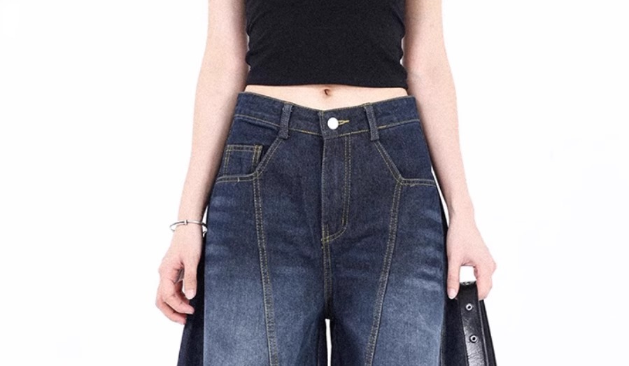 アメリカのレトロなマイクロラップジーンズ女性の夏の新しいファッションブランドのストレートでゆるいデザイン感があります。