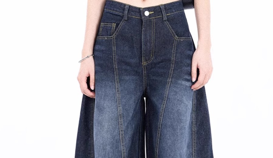 アメリカのファッションブランドの高い街のジーパンの女性2025年春秋の新型の復古のまっすぐな筒は地を引きずって広い足の長いズボンを合わせます。