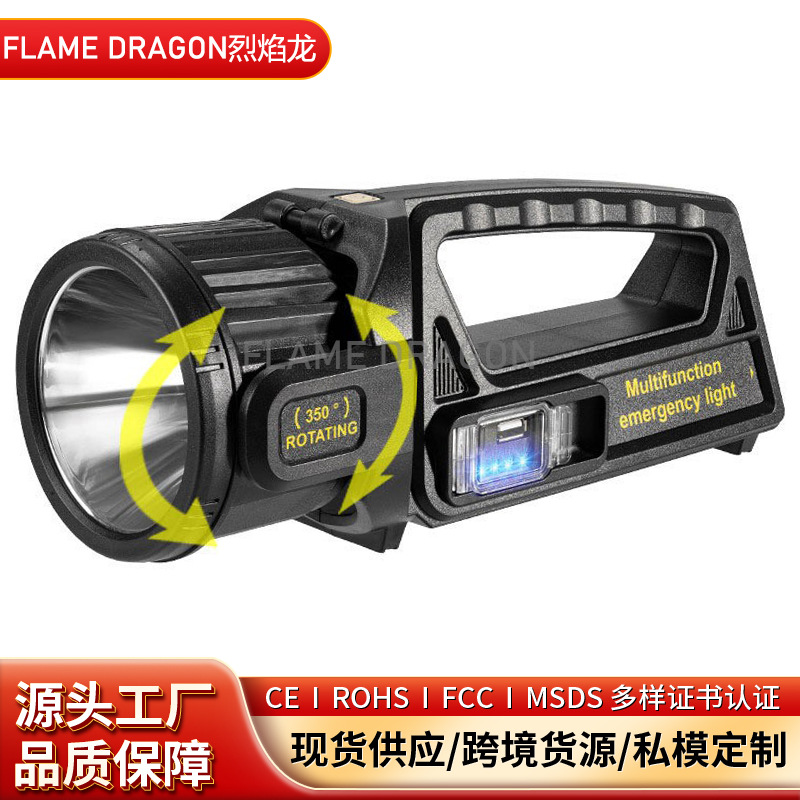 クロスボーダー新型多機能太陽光手提げライト強光遠射サーチライト大出力投光照明懐中電灯