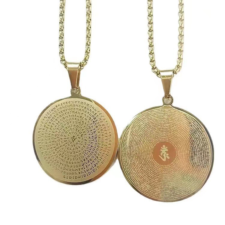 楞严経ペンダント 文殊菩薩 黄財 緑度母模様 固定図面対応 チタン鋼ペンダント ジュエリー ハンギングペンダント