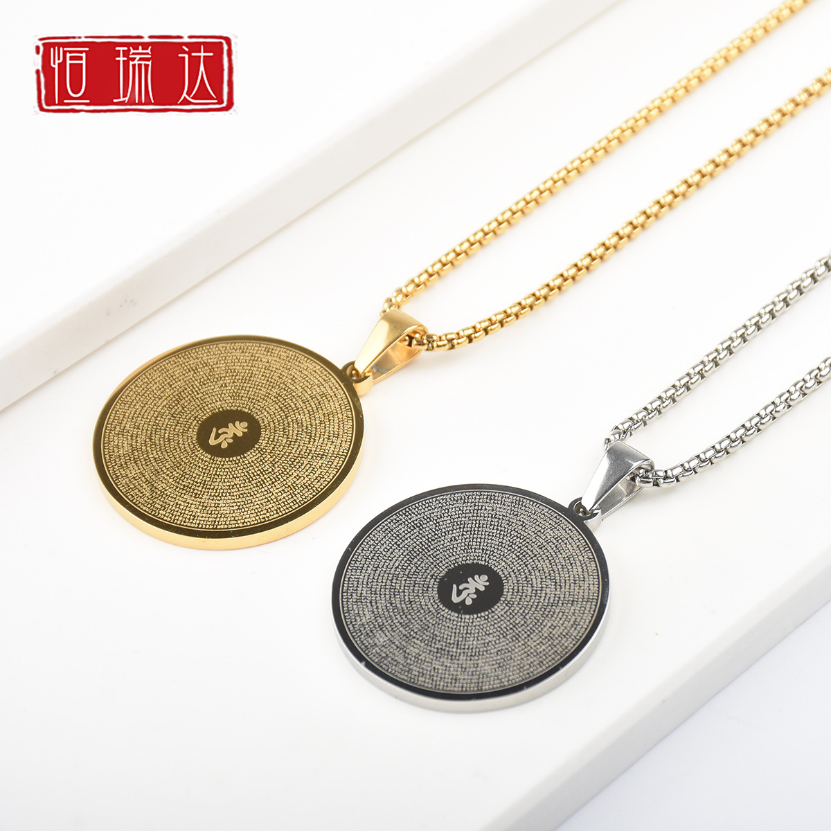 正方形チタン鋼ラーダンマペンダントレーザー彫刻ラーダンマペンダントラウンドフルテキストラーダンマペンダント男性と女性用