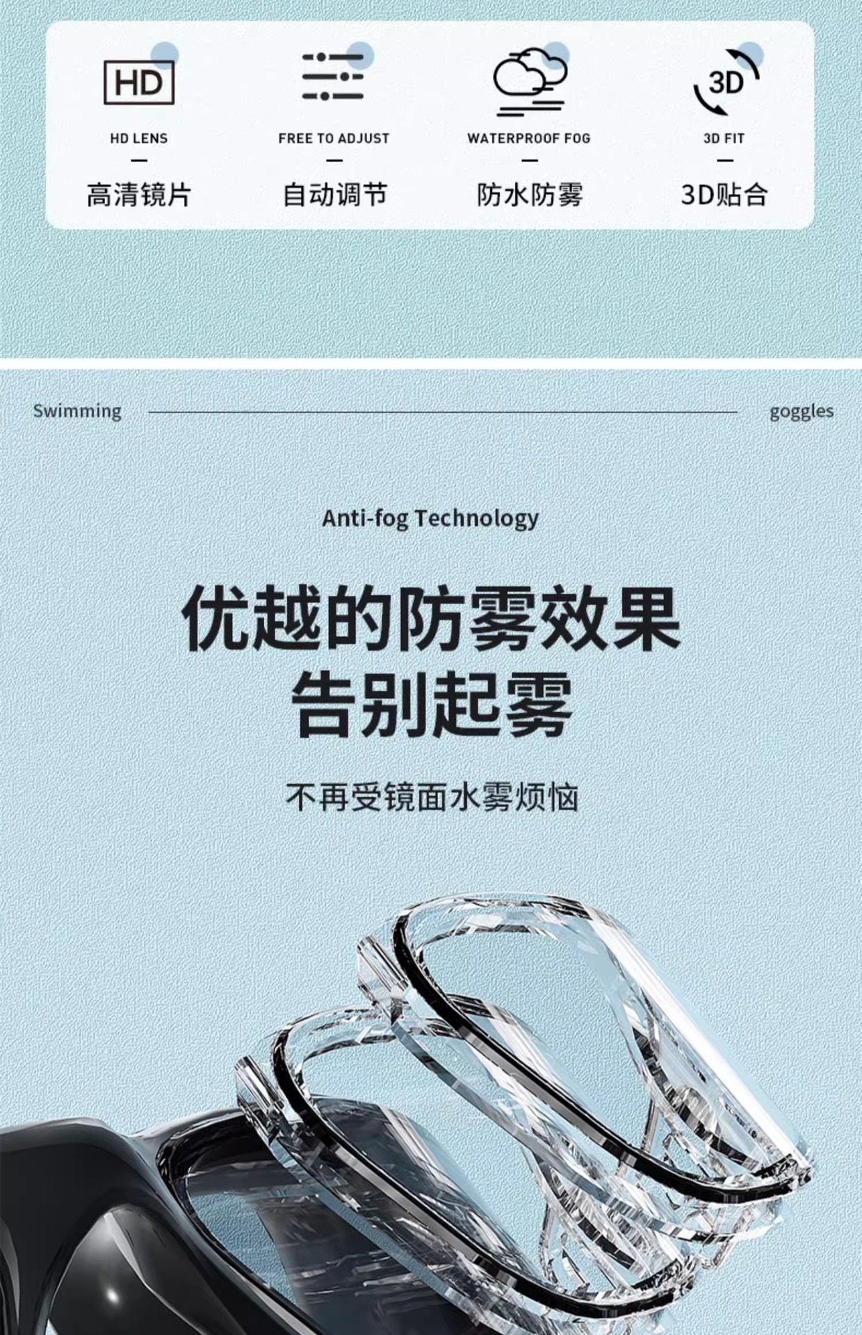 新型ゴーグル女性近視水泳メガネ潜水装備男性セット耳栓付き防水防霧ファッション大枠