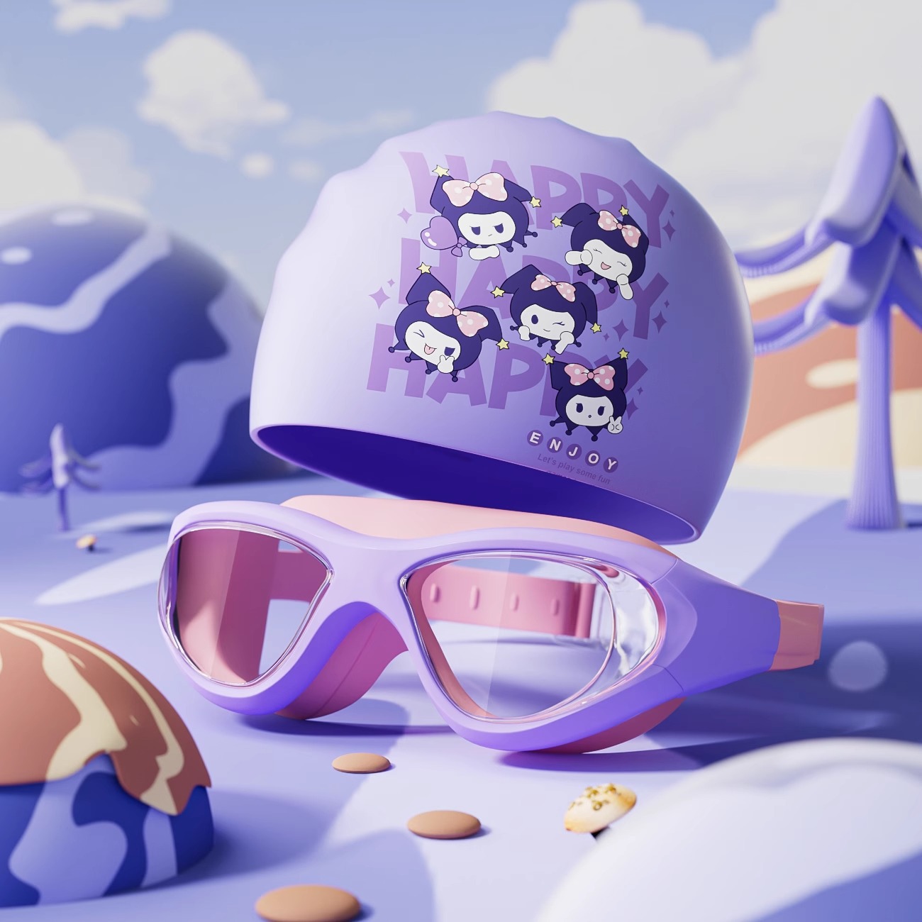 子供用ゴーグル防水防霧ハイビジョン水泳メガネ水泳帽子セット男女子供専門水泳潜水鏡装備