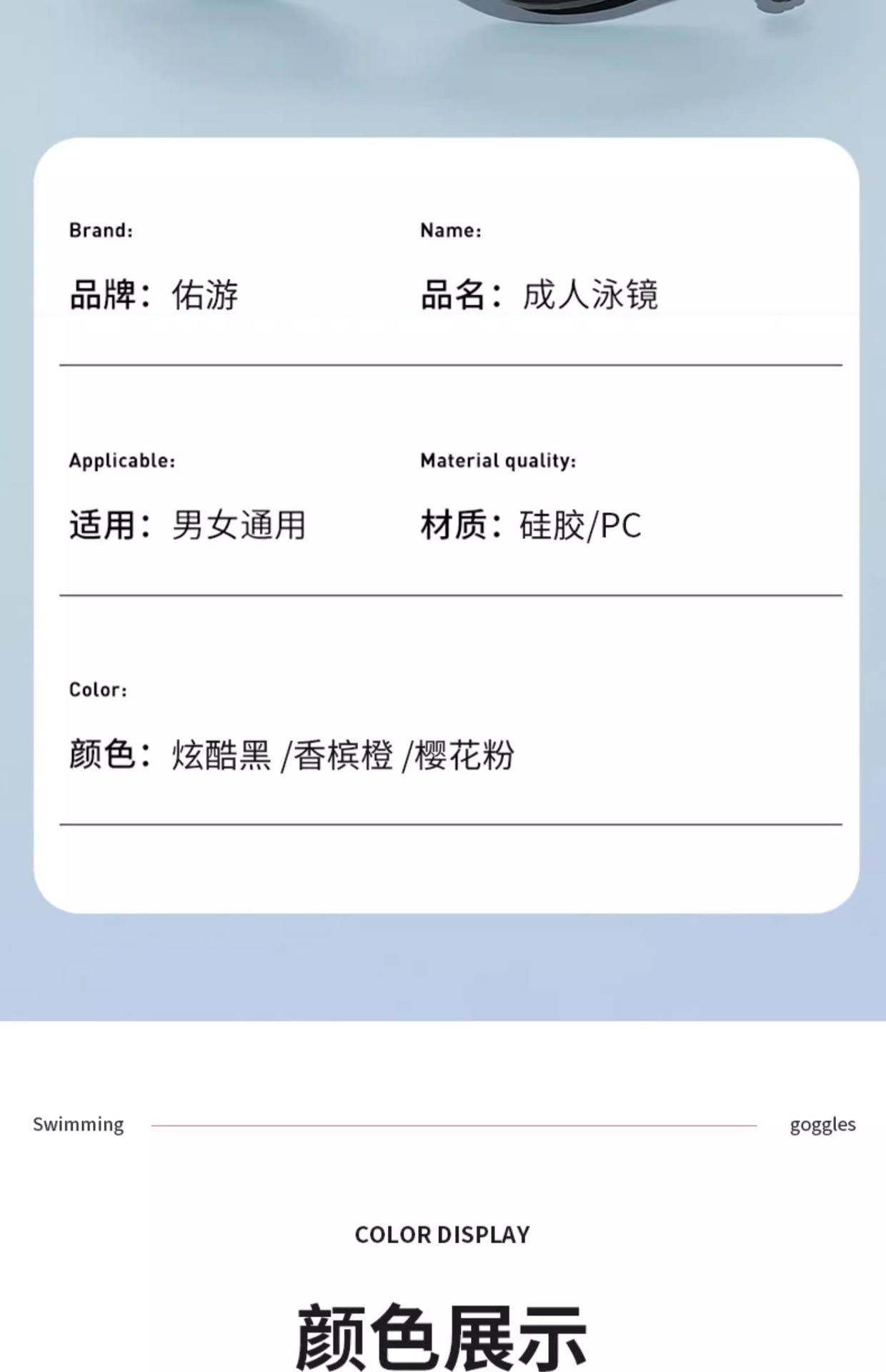 佑水泳鏡高精細防水防霧大枠水泳眼鏡成人男女水泳鏡水泳専門装備卸売り