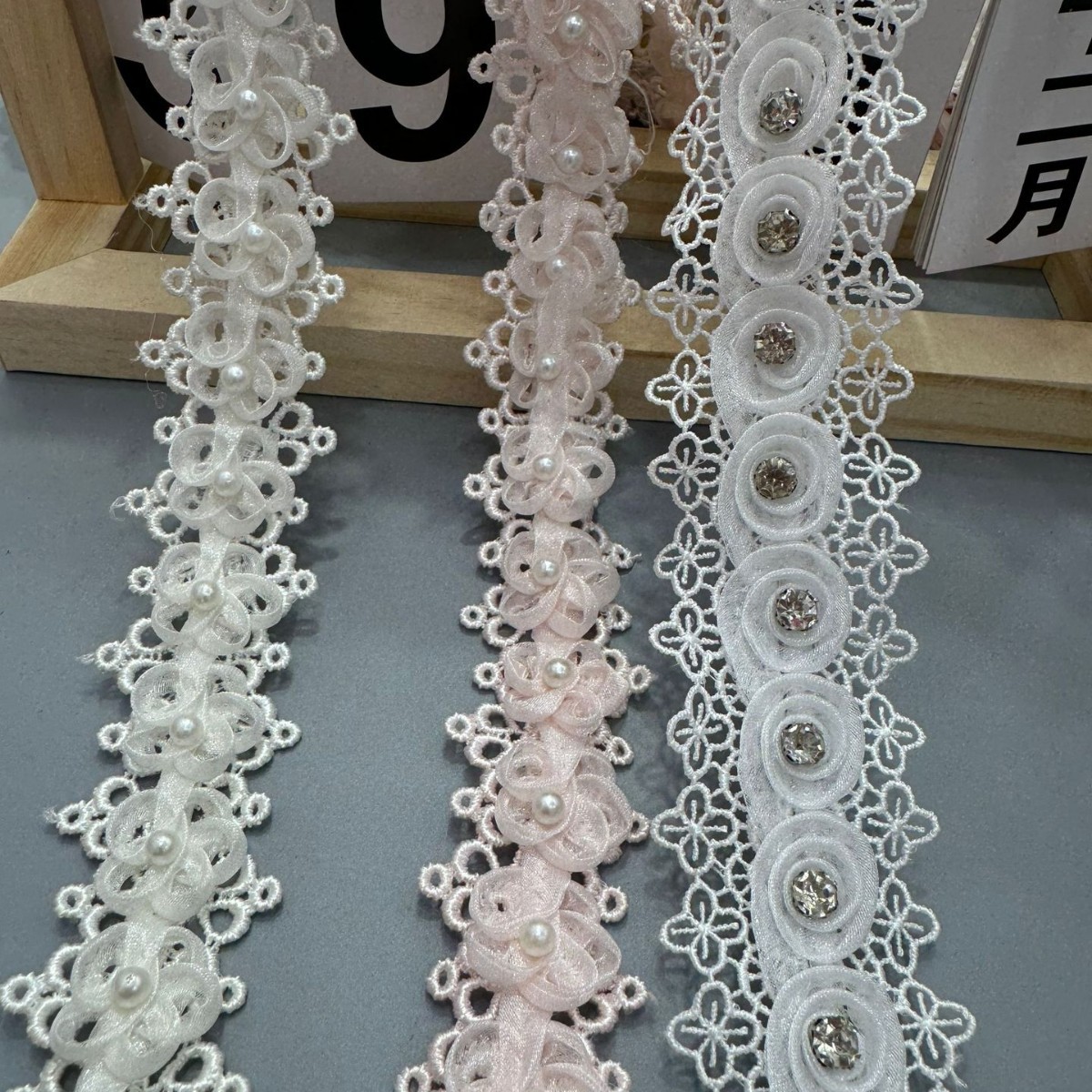 工場直販ホワイトレース diy 装飾刺繍ビーズフラワースカート袖ネックライン生地衣類アクセサリー