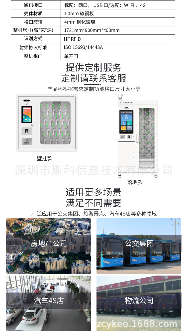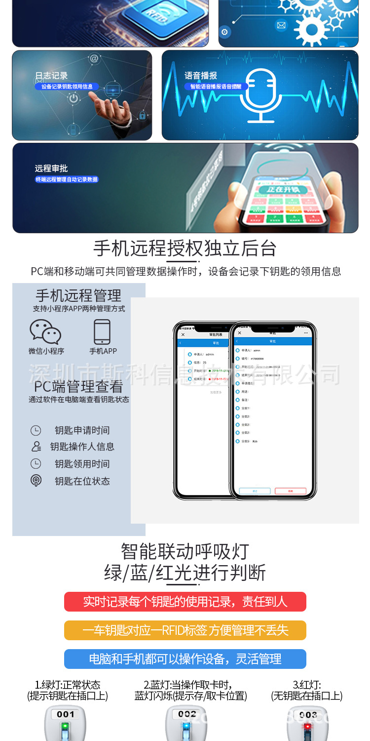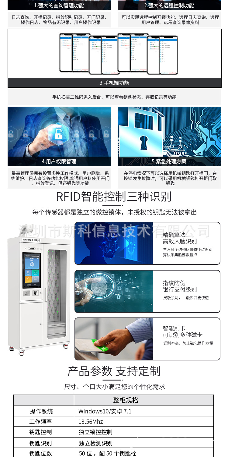 RFIDスマートキーキャビネット 指紋認証・顔認証 公共車両キー管理キャビネット 遠隔承認キー保管キャビネット