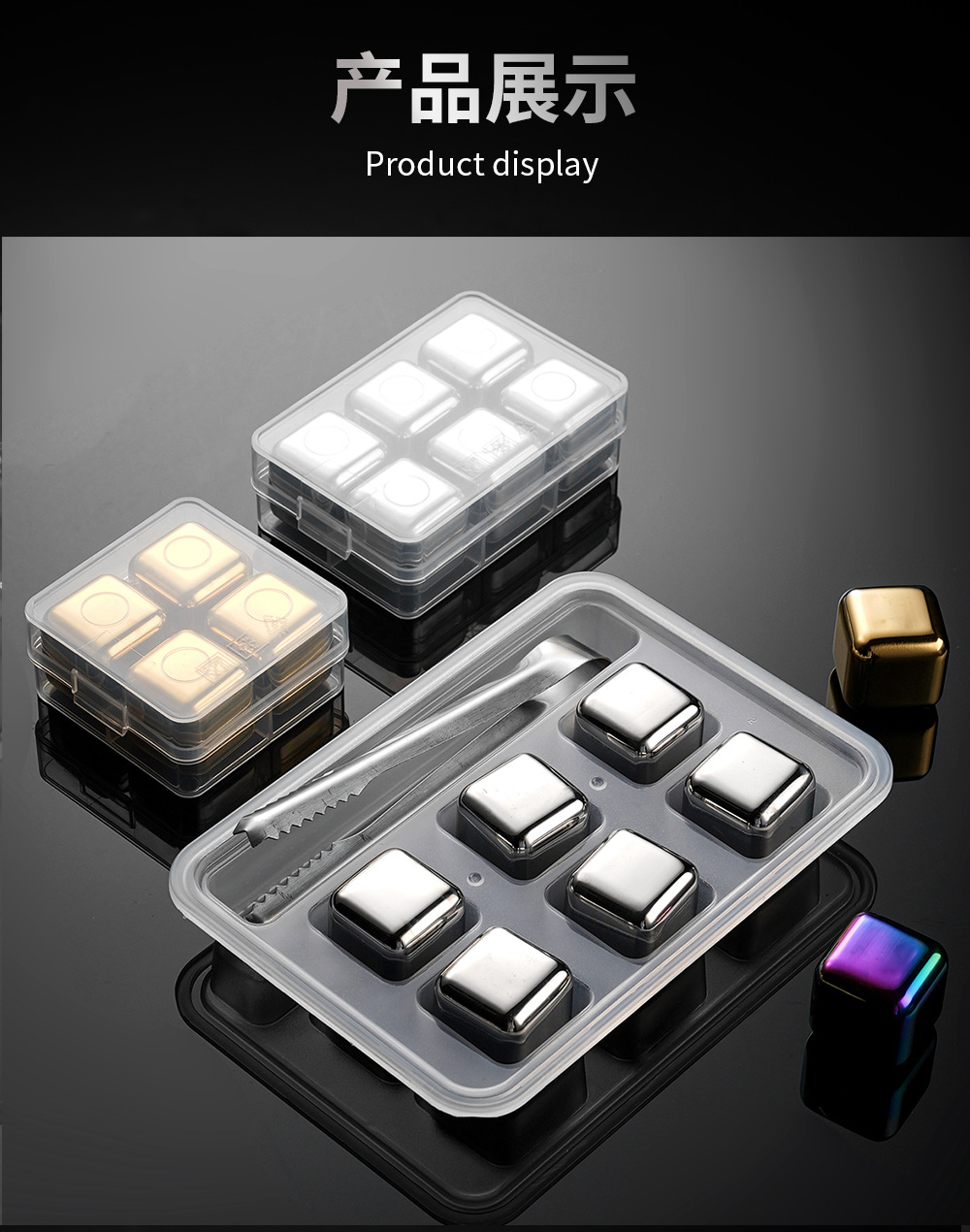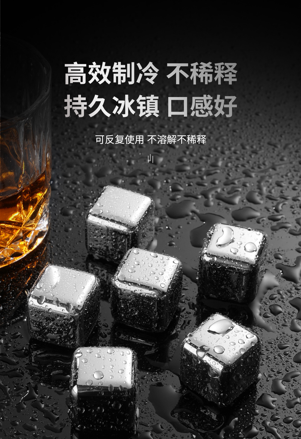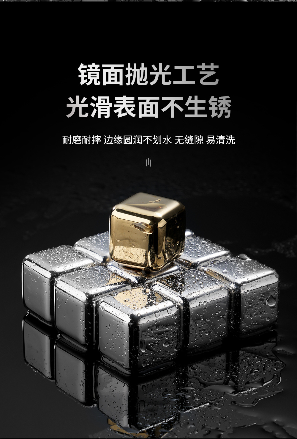 高品质高镜面不锈钢冰块金属冰酒石可循环食品级速冻冰粒一件代发