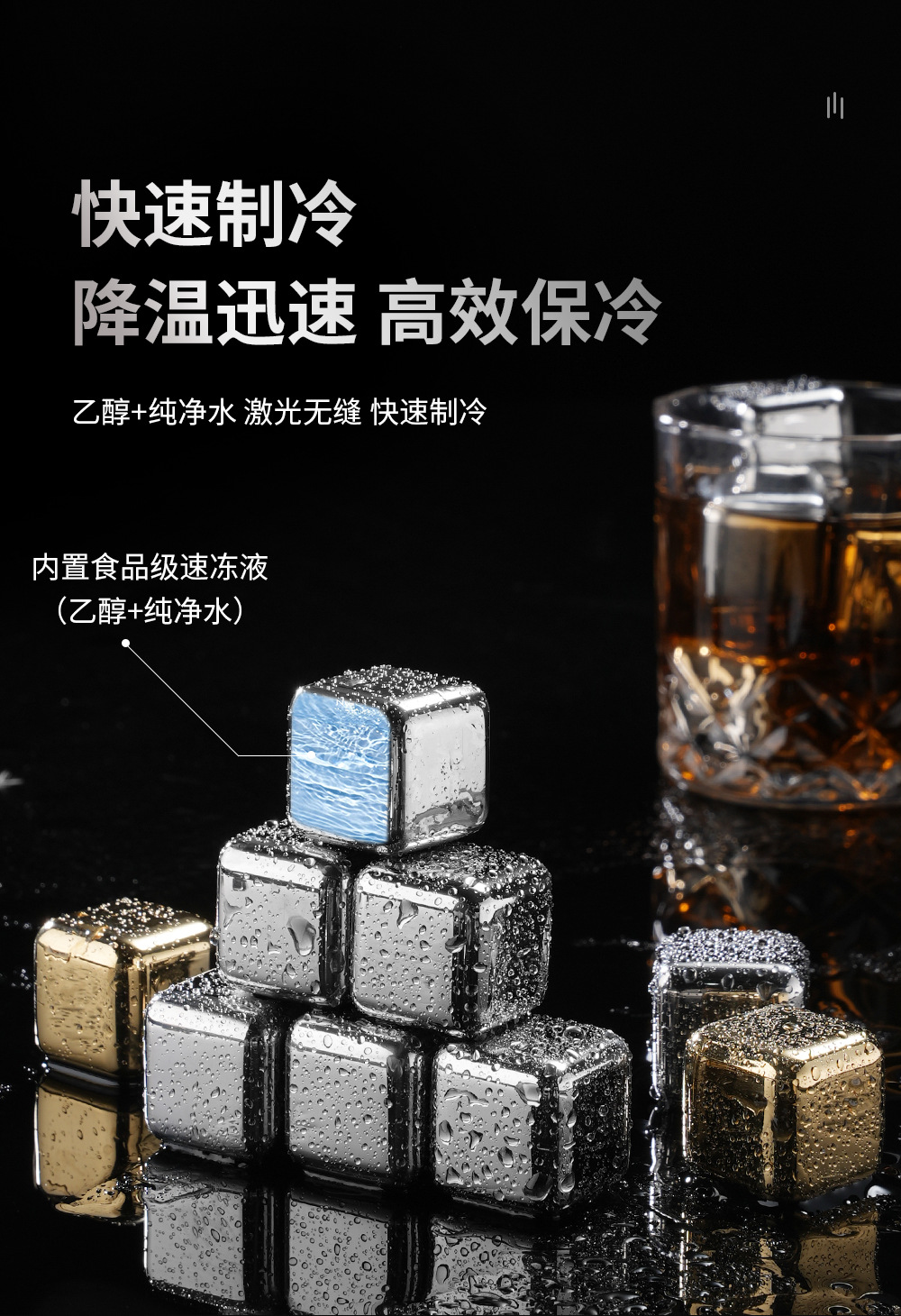 国境を越えた氷箸、洋酒急速冷凍、304ステンレス製氷キューブ、チタンメッキ、バー、ウイスキー、ビール、アイスワインストーンセット