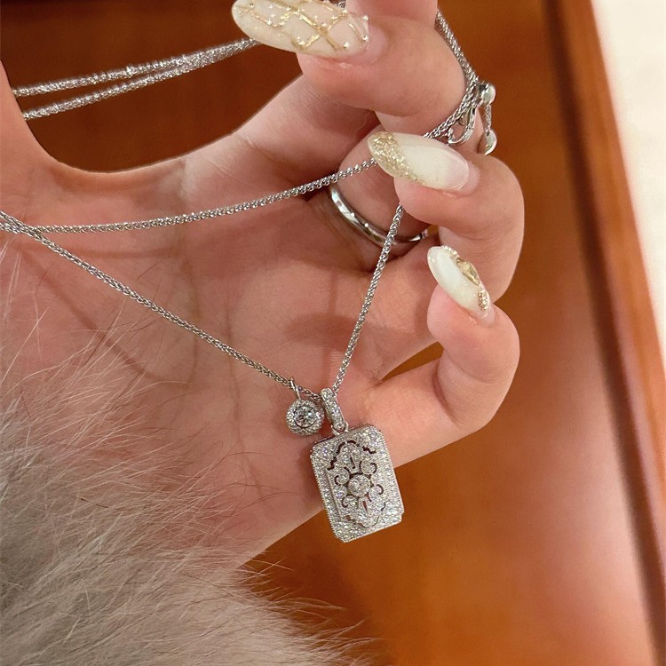 ファインスクエアダイヤモンドネックレス,太いスクエアダイヤモンドネックレス