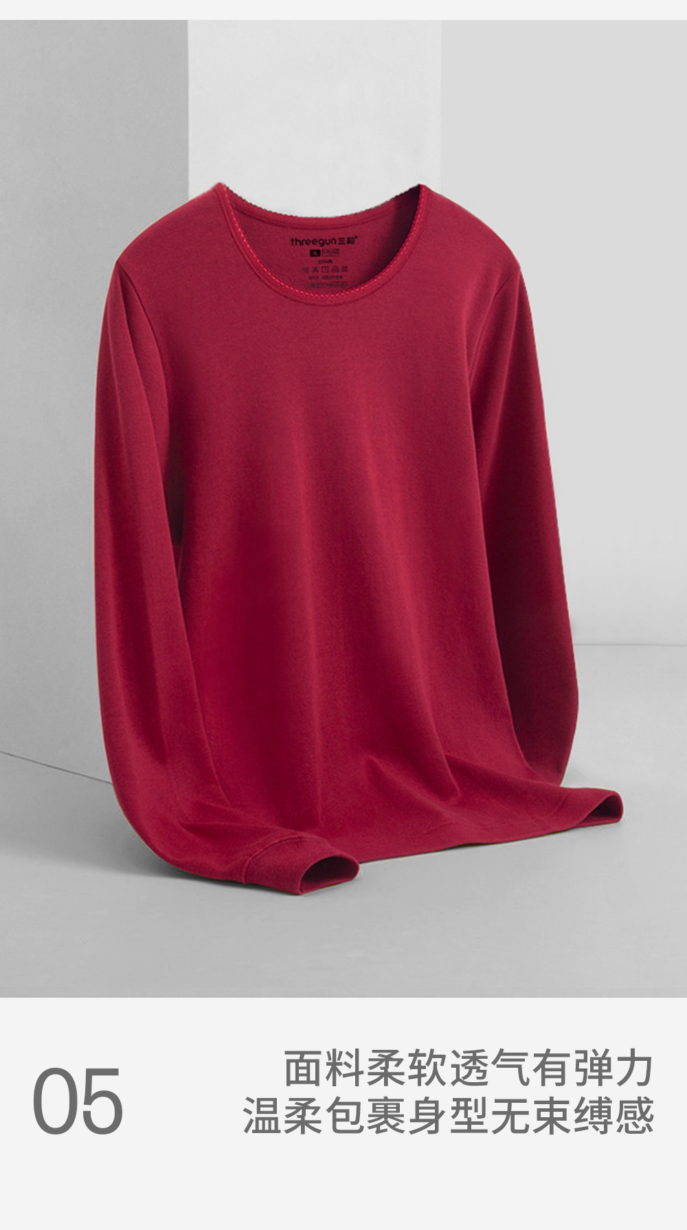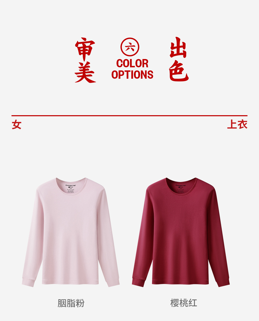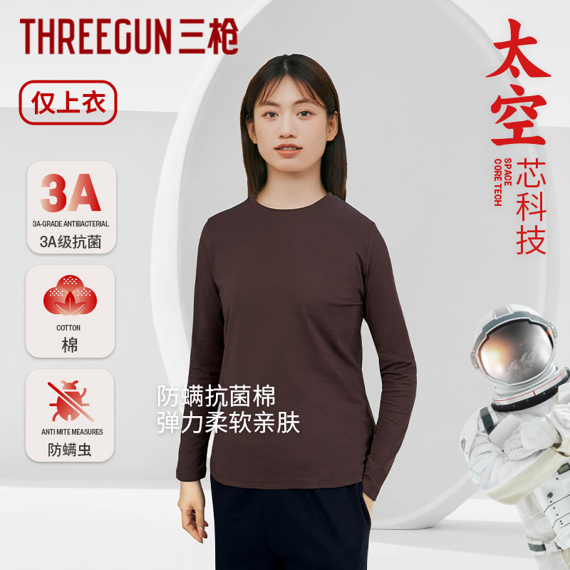 三銃保温下着女性秋冬一枚上着長袖抗菌綿丸襟女性シャツ