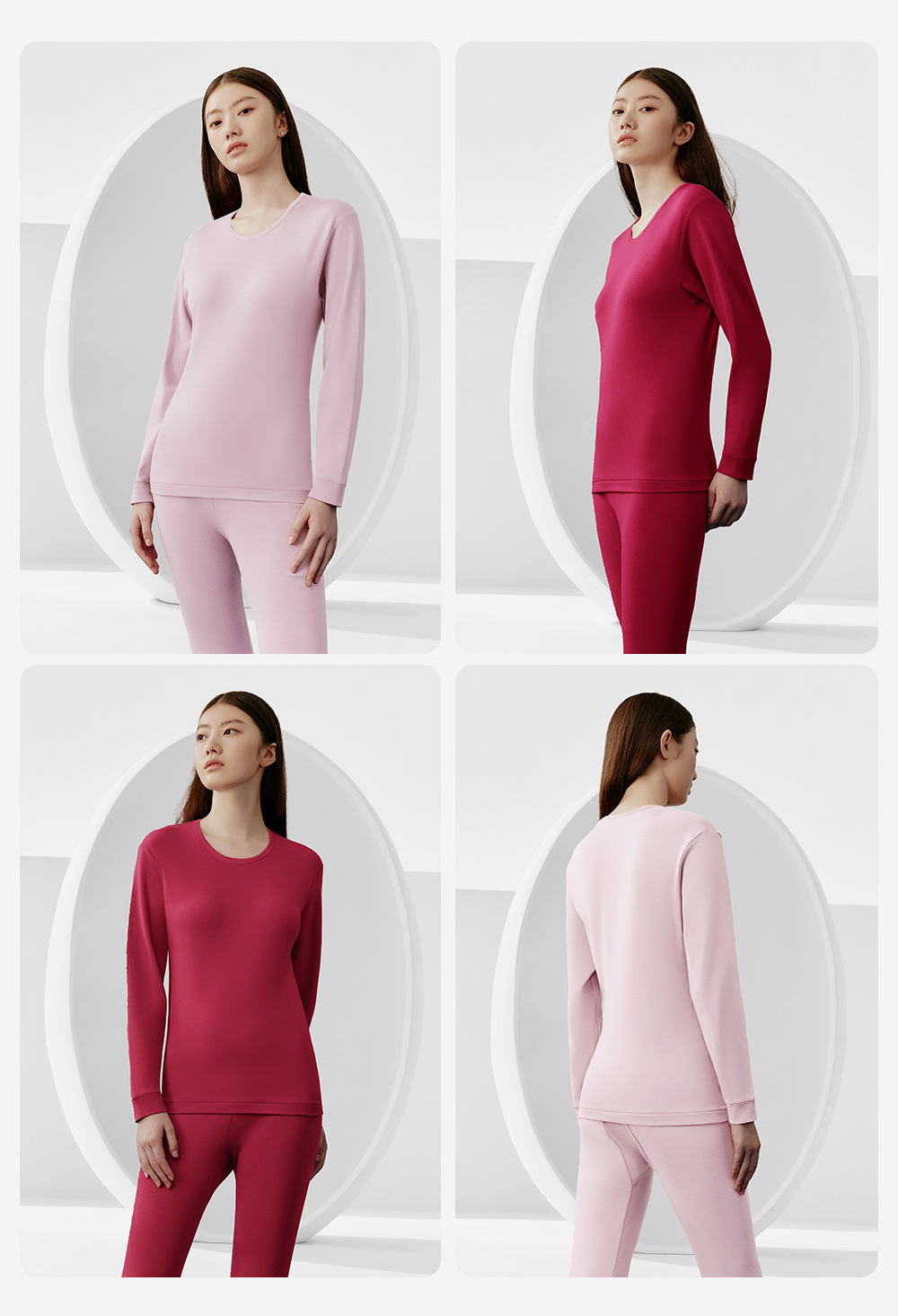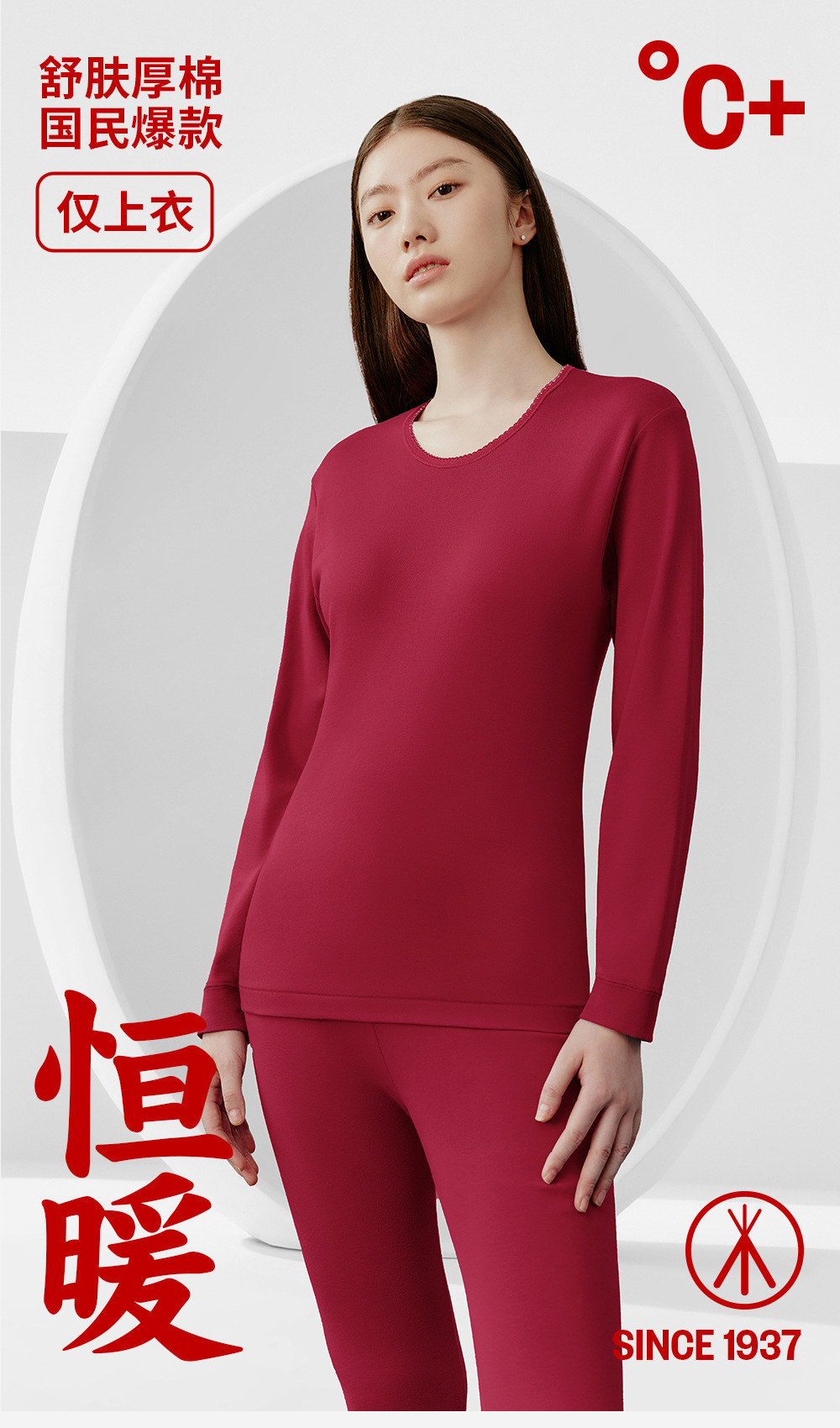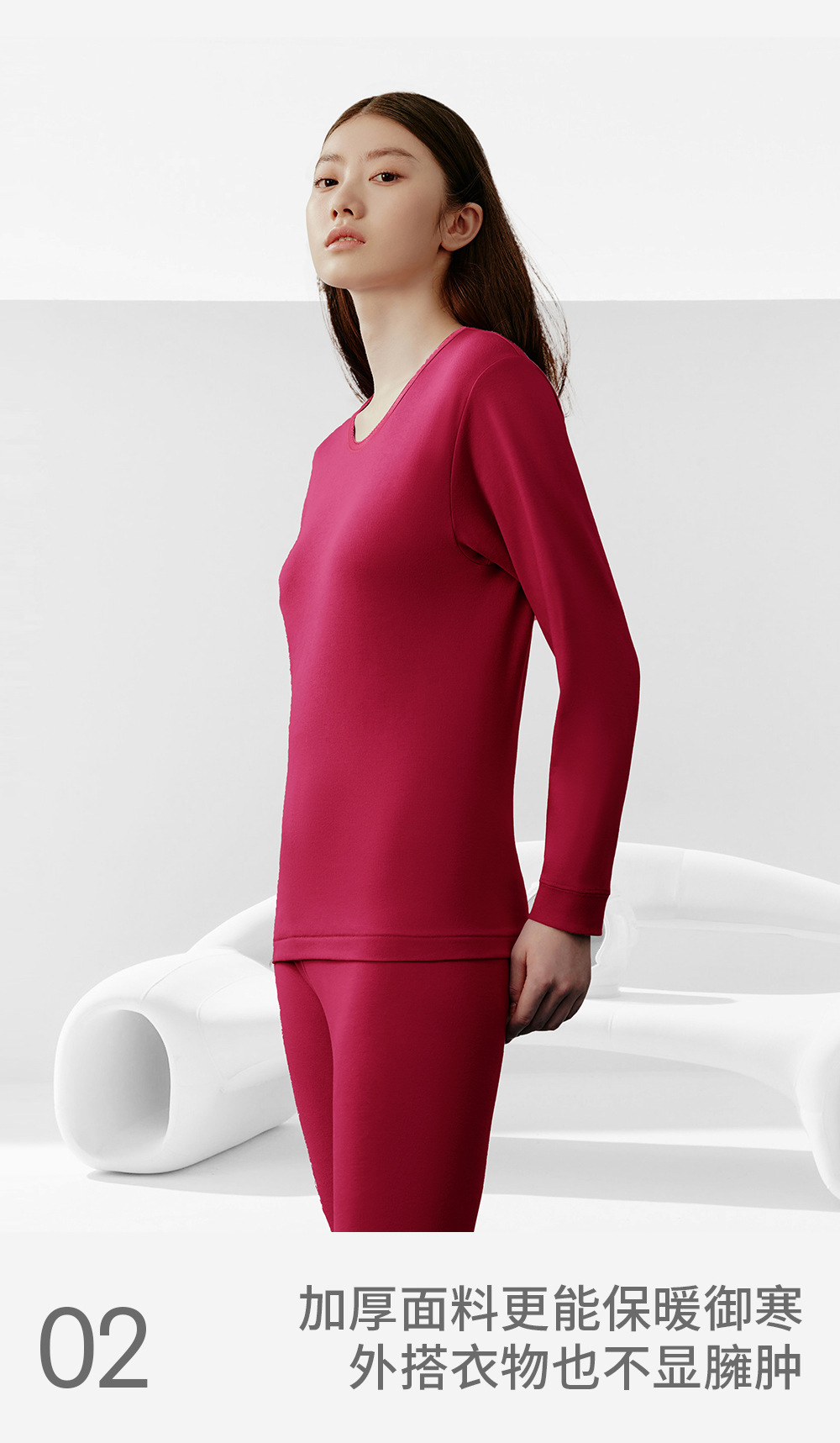 三銃保温下着女性秋冬一枚上着長袖抗菌綿丸襟女性シャツ