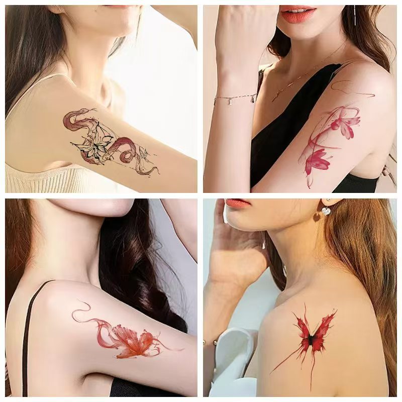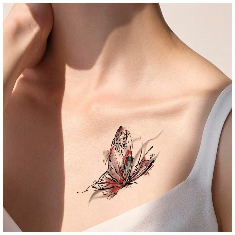 水墨風蝶紋様貼り小清新防水持続少女暗黒個性ins元気鎖骨紋様貼り