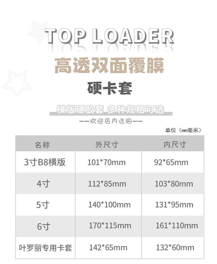 PVC硬卡套覆膜高清高透多尺寸白卡套4/5/6寸生写明信片烧普小卡