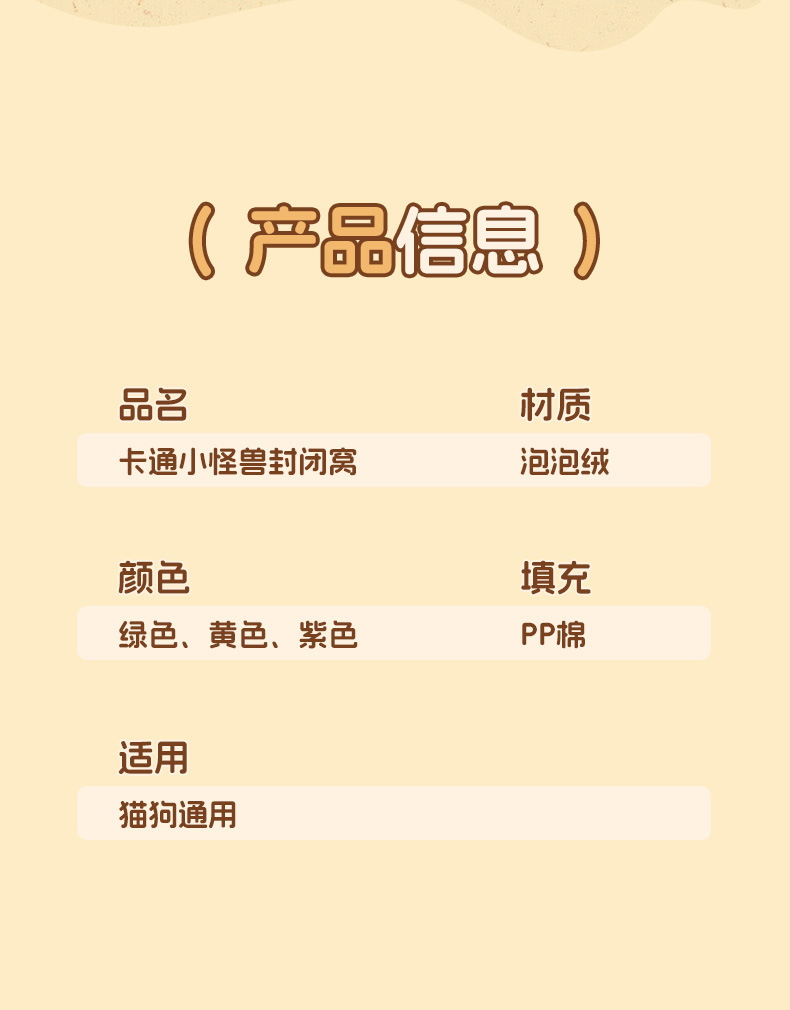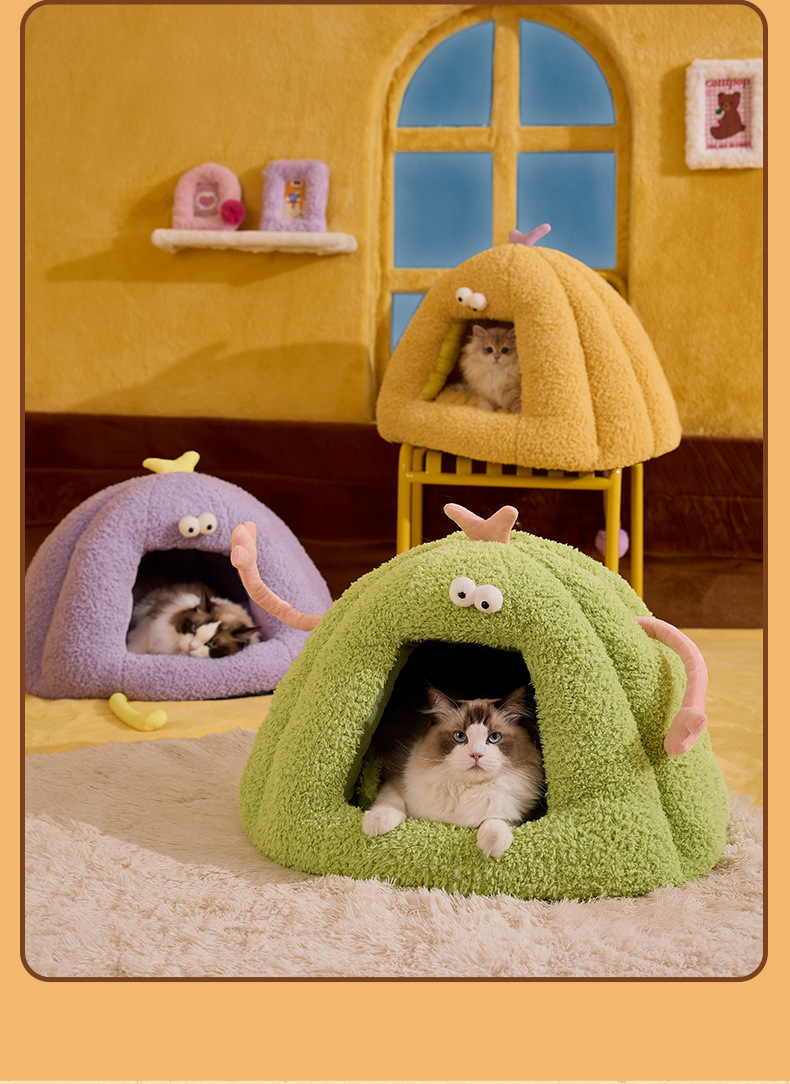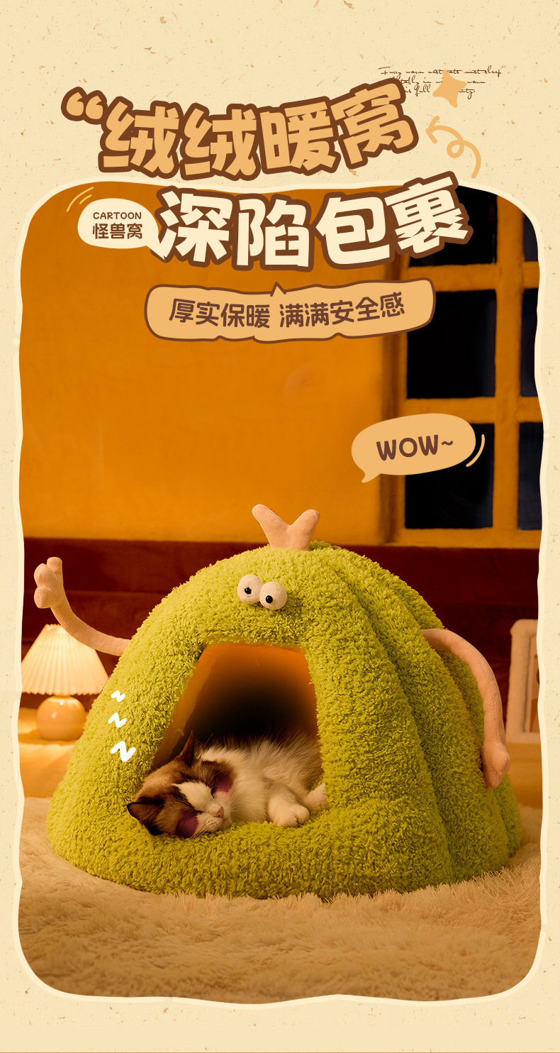 オールシーズン対応の新しい犬小屋、半密閉型犬小屋、小さなモンスター型ぬいぐるみハウス、猫小屋マット、ペット用品