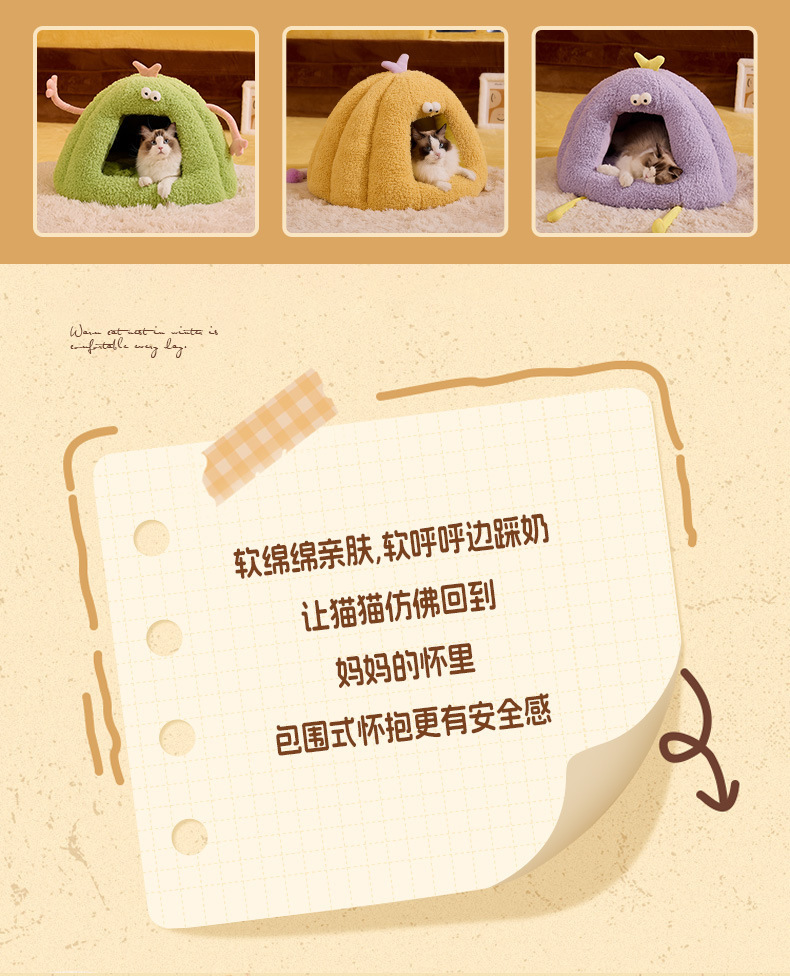 新型犬犬小屋冬保温半閉鎖式猫小屋マット秋冬小怪獣形猫ペット用品卸売り