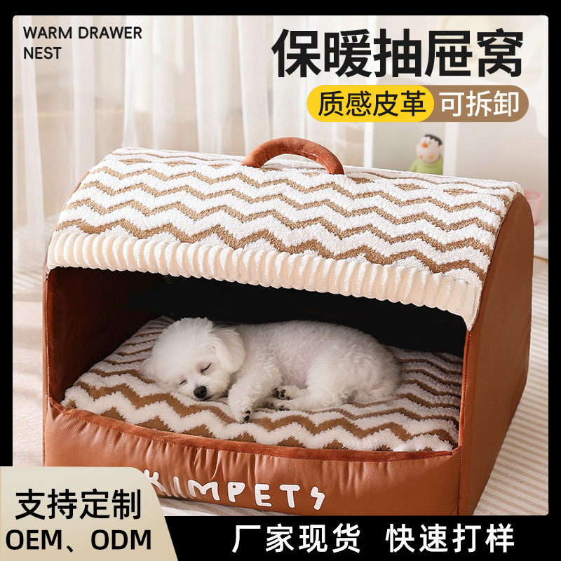 抽屉式狗窝冬天加绒保暖半封闭式大空间猫窝质感皮革狗窝四季通用