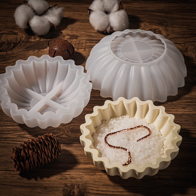 ラウンドレース収纳ボウルシリコーン金型diyセメント石膏折り纸波パレット皿ドロップゴム金型