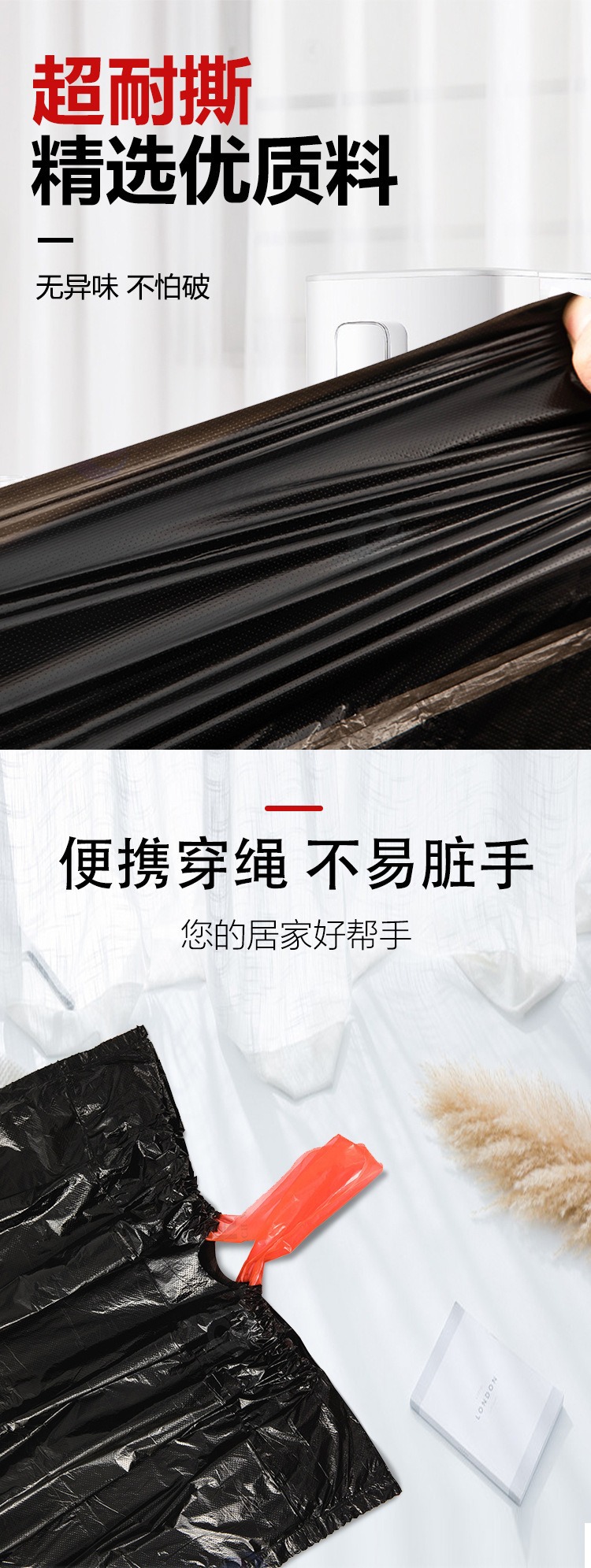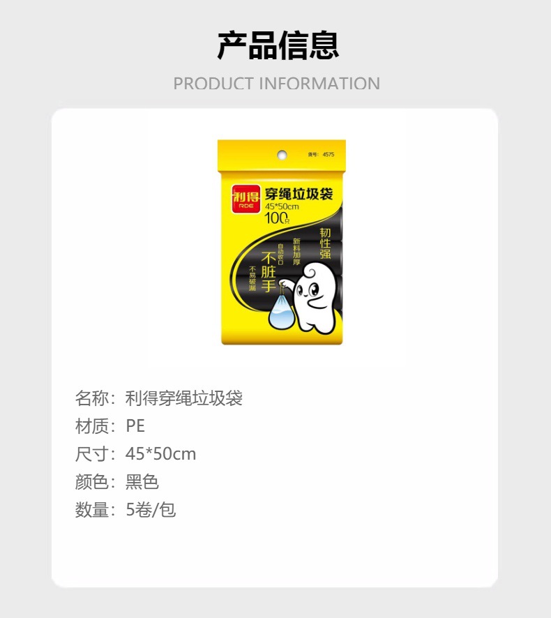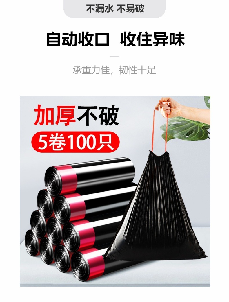 手のロープを通すゴミ袋は、黒45*50cmのロープを100本厚くした5巻のNO. 4575スポット卸売り