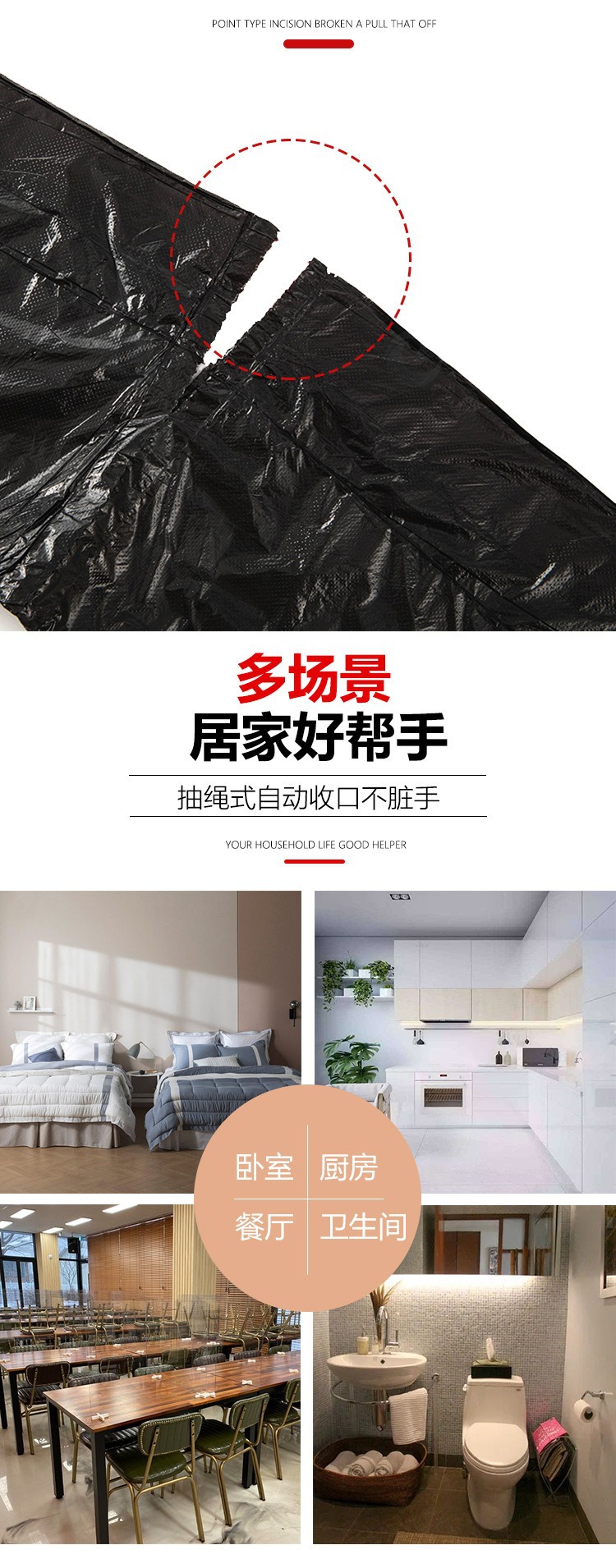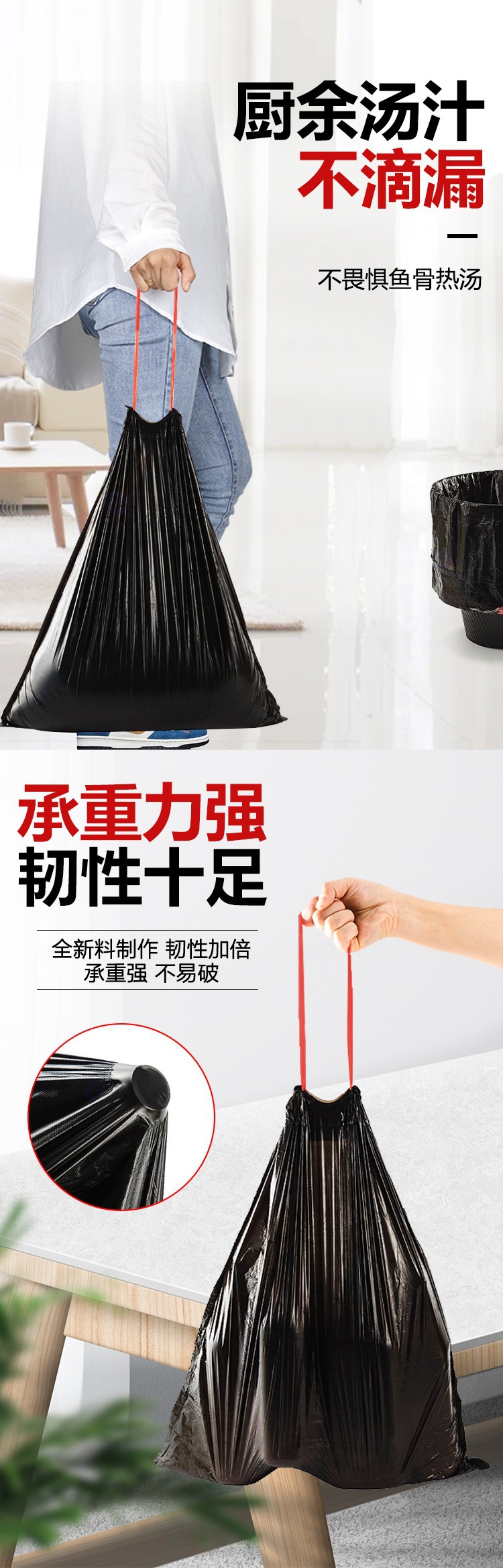 使い捨てゴミ袋を厚くして家庭用自動レジの携帯式汚れない手でロープを引くゴミ袋の飛行機箱を包装する