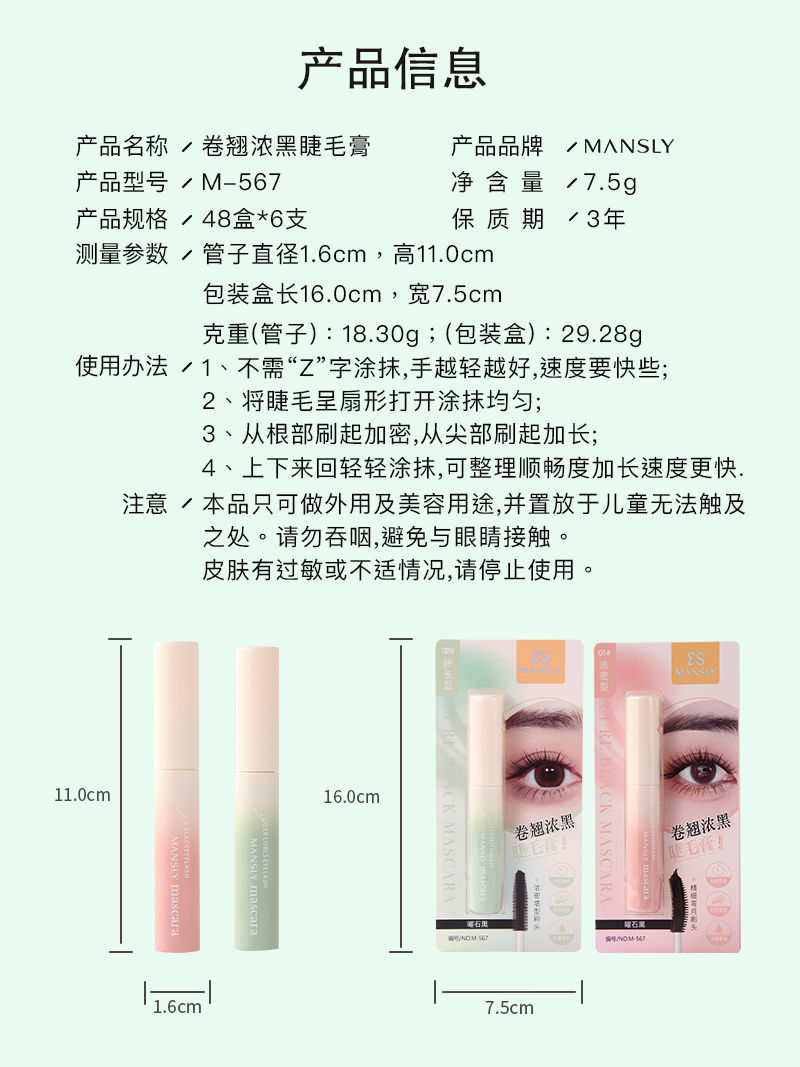 新型の巻き上げの濃い黒のマスカラの防水はぼんやりしていません。