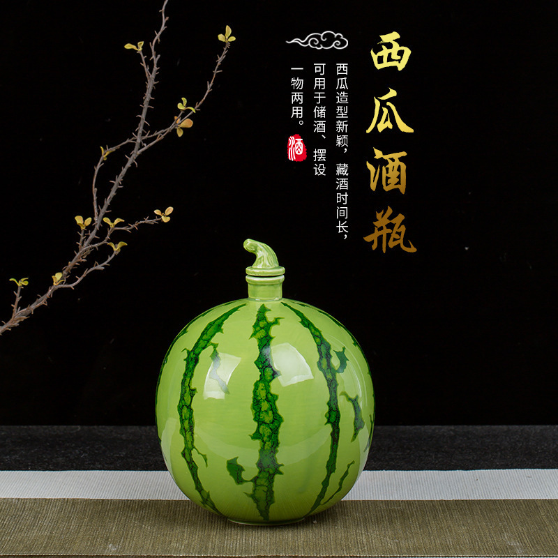 景徳鎮の陶磁器の酒の瓶の1斤のスイカの瓶の空の酒の祭壇の酒の道具は家庭用の酒の缶のワインの缶のアイデアの置物を密封します。
