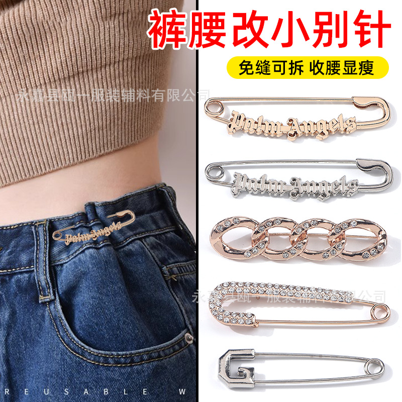 跨境防走光珍珠水钻大别针牛仔裤改小收紧衣服固定神器装饰胸针