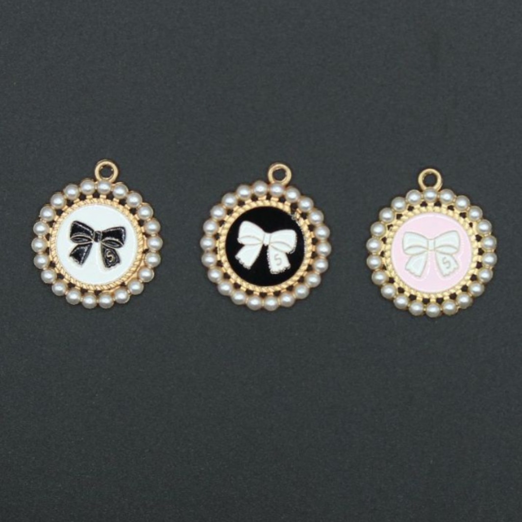 ヘアアクセサリー材料ヘアアクセサリーdiy合金アクセサリー真珠ちょう結びラウンドペンダントdiyドリップオイル合金材料ストレートバッチ