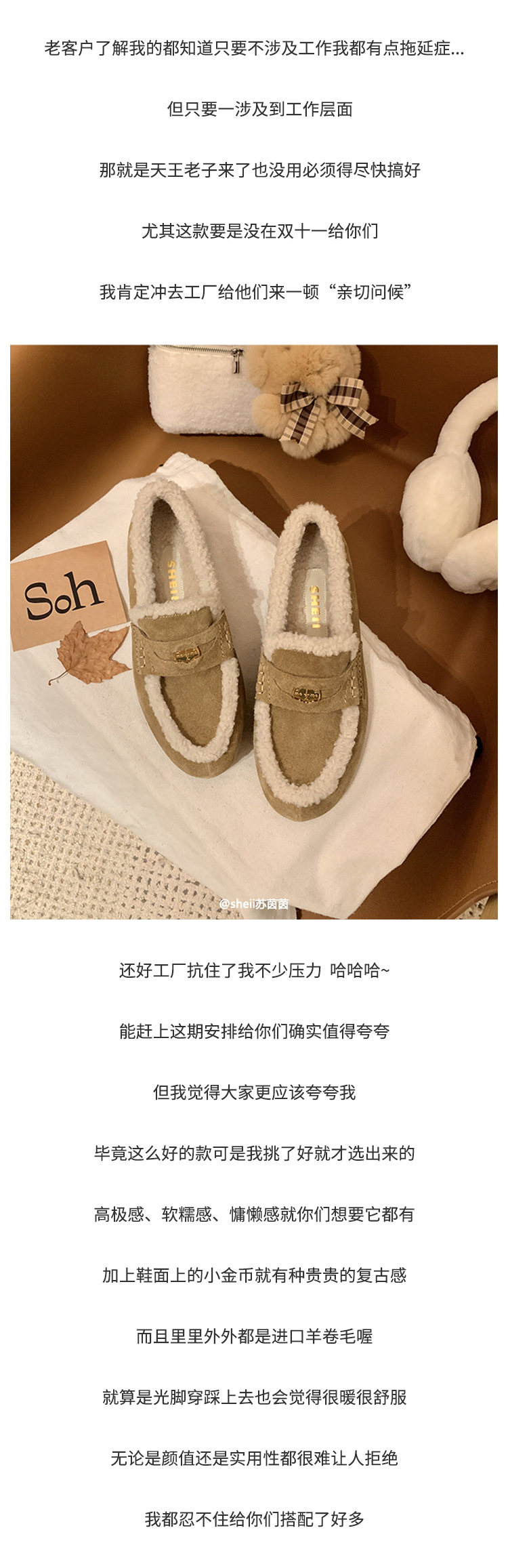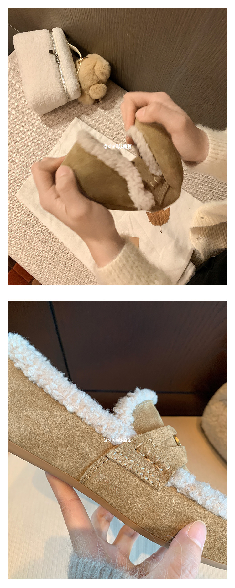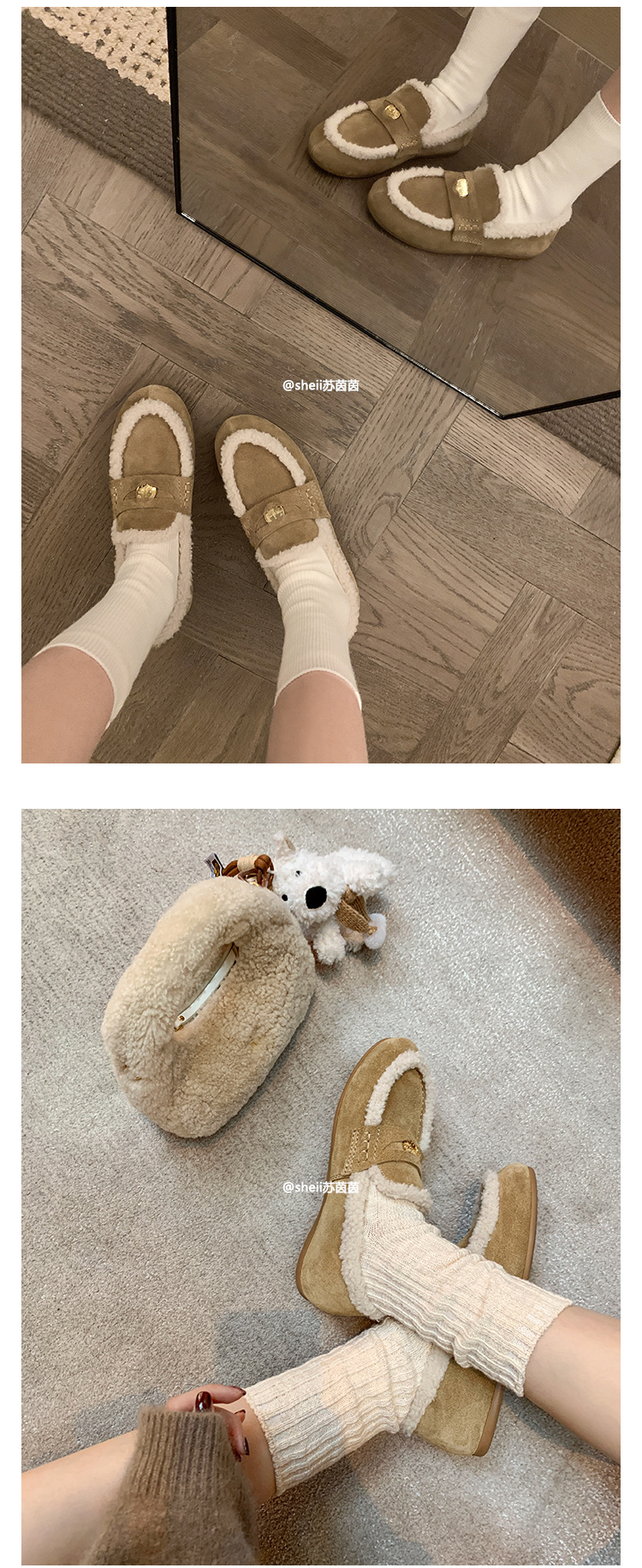 【蘇家同款】蘇黎雪~保温性のある裏起毛のレディースフラットシューズ、モコモコのレザーシューズ、レディースシューズ